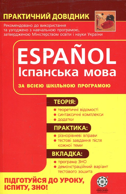 Пропонований практичний довідник допоможе учням систематизувати, конкретизувати і поглибити набуті знання і вміння з іспанської мови, а також долучитися до активної самостійної роботи. Структура і зміст практичного довідника повною мірою відповідають вимогам навчальної програми для середньої школи. Довідник може бути використаний як для самостійного опрацювання учнями наведеного матеріалу, так і для роботи під керівництвом учителя. Видання розраховане на старшокласників, абітурієнтів, а також студентів першого курсу та викладачів вищих навчальних закладів.