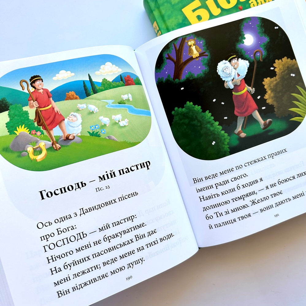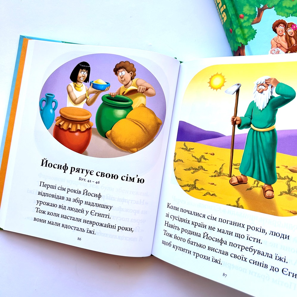 Ця книжка – чудова пригода, яку читачі переживуть разом із біблійними персонажами. Завдяки динамічній манері оповіді та майстерним ілюстраціям у ній оживають більш як 90 найвідоміших історій з Біблії. Це саме та книжка для першого знайомства наймолодших читачів зі Святим Письмом.