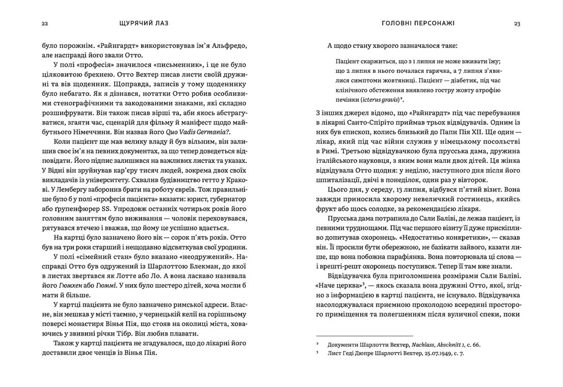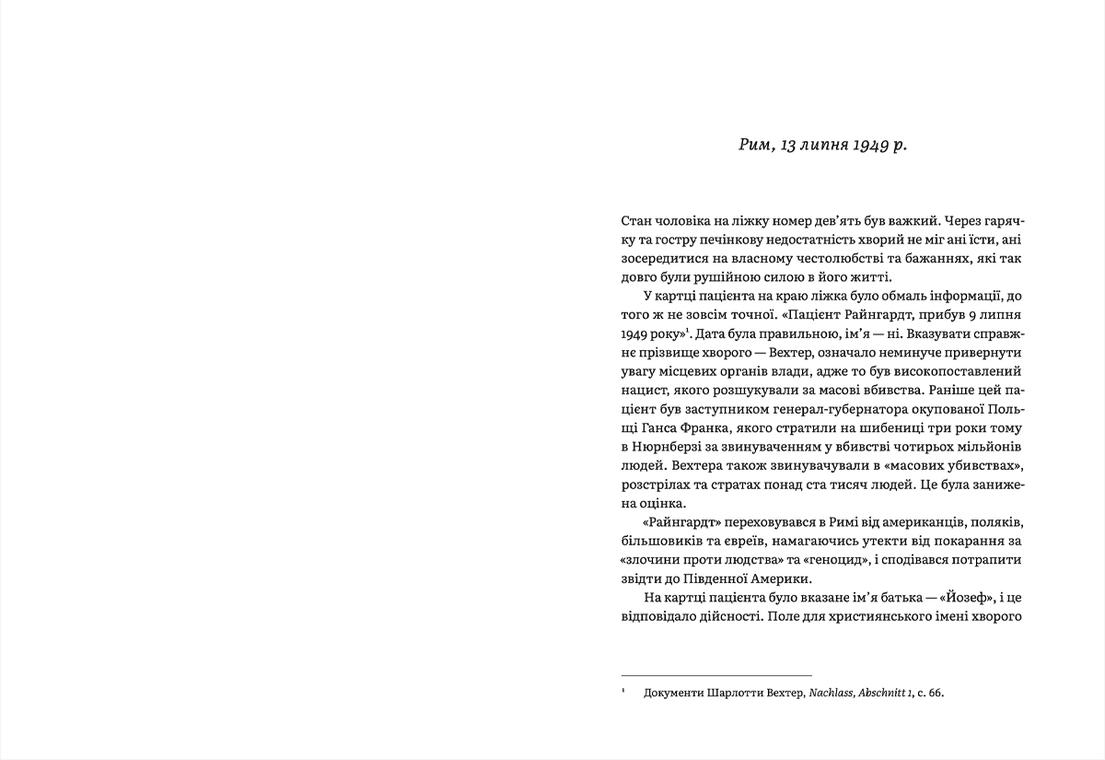 У цьому захопливому, невигаданому трилері на основі реальних подій Філіп Сендс пропонує унікальну розповідь про життя нацистського групенфюрера SS Отто Фрайгера фон Вехтера та його дружини Шарлотти. Досліджуючи приватний архів сімейних листів і щоденників, він розкриває правдиве історичне тло про життя до і під час війни, про втечу в Альпи, переховування в Римі, а також про часи Холодної війни.
