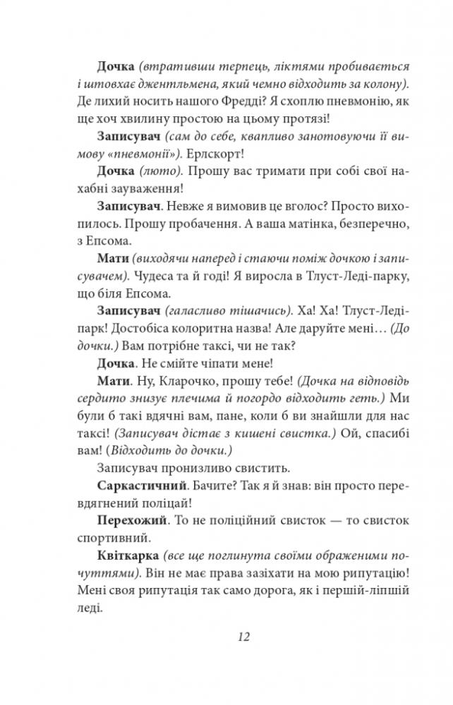 Бернард Шоу (1856-1950) – ірландський письменник і драматург, лауреат Нобелівської премії. Більшу частину свого життя він жив і творив в Англії, проте саме Ірландія, де суперечності тієї епохи – від соціальних до релігійних, виявлялися особливо разюче, сформувала його водночас бурхливий і глузливо-спокійний характер, у якому поєднувалася жага справедливості й уїдливий скептицизм. Така сама й драматургія Бернарда Шоу – гостра, проблемна, де герої завжди є носіями певних поглядів. Нічого подібного на англійській сцені, та і європейській загалом тоді не було. У цій книжці переважно вміщено п’єси, яким навіть сам автор дав визначення – «неприємні». Ще б пак! Адже в них йдеться про моральні злочини, грошові махінації, шлюбні зради, проституцію. Не бракує своєрідності й улюблениці постановників – п’єсі «Пігмаліон». У ній автор ну дуже незвично витлумачив відомий міф.