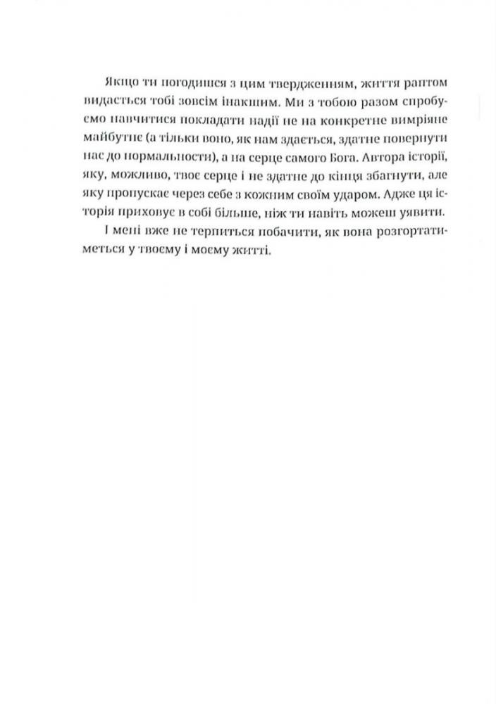 Ліза Теркерст, авторка бестселера «Небажана», приготувала для читачів нову мандрівку в світ її почувань, карколомних ситуацій і роздумів про те, що на все свій час. Радість чи смуток, випробування чи щасливе розвʼязання проблем – жодна з життєвих подій не є випадковою. Чи саме такий Божий задум? Авторка запрошує поміркувати над цим усіх, кому не раз видається, Що все мало би бути по-іншому.