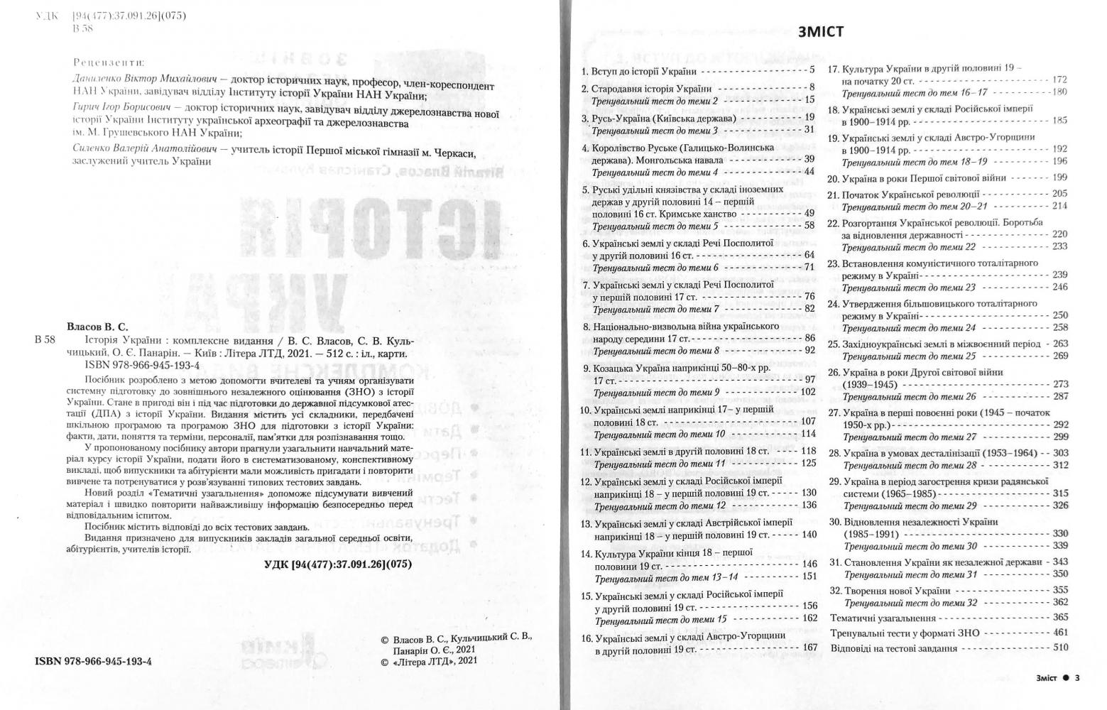 Посібник розроблено з метою допомогти вчителеві та учням організувати системну підготовку до зовнішнього незалежного оцінювання (ЗНО) з історії України. Стане в пригоді він і під час підготовки до державної підсумкової атестації (ДПЛ) з історії України. Видання містить усі складники, передбачені шкільною програмою та програмою ЗНО для підготовки з історії України: факти, дати, поняття та терміни, персоналі!, пам’ятки для розпізнавання тощо.