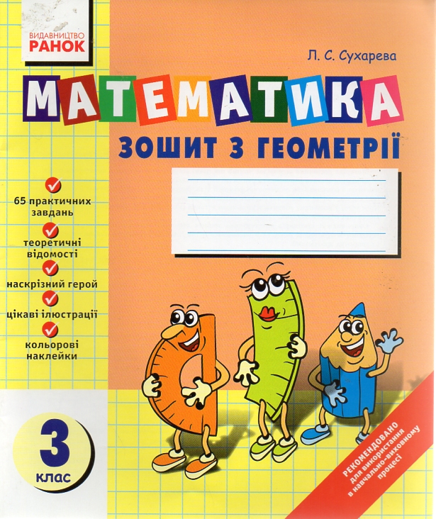 Матеріал посібника відповідає чинній програмі з курсу математики в початковій школі. Завдання зошита допоможуть учням засвоїти необхідний теоретичний мінімум із геометрії, навчитися розпізнавати геометричні фігури й тіла, будувати геометричні фігури й обчислювати їхні периметри та площі, виконувати завдання на розвиток уваги та просторової уяви тощо. Крім того, у посібнику міститься кольорова вставка із наклейками, які використовуються при виконанні ігрових завдань. Супроводжує школярів по сторінках зошита веселий Геометрик. Цей герой допомагає усвідомити просторові поняття й упевнитися в тому, що світ геометрії надзвичайно цікавий і навпрочуд зрозумілий. Посібник призначений для роботи в класі та вдома.
