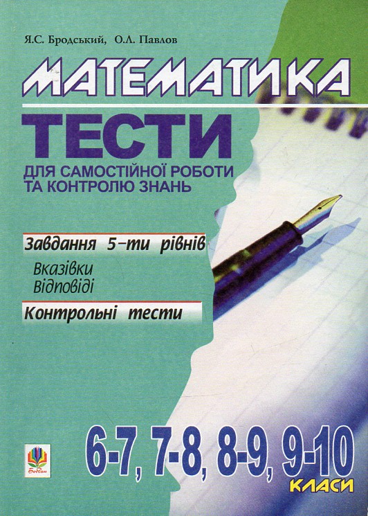 Математика.Тести для самостійної роботи та контролю знань.6-7,7-8,8-9,9-10 кл.