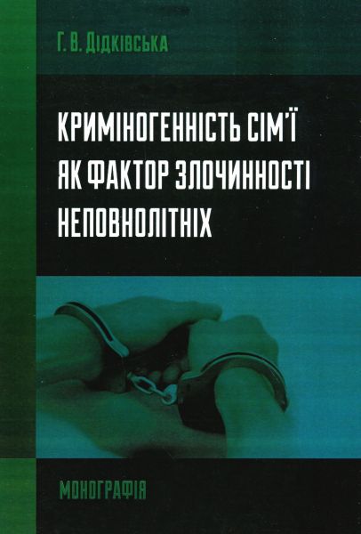 Криміногенність сімї як фактор злочинності неповнолітніх Монографія. Дідківська Г. В. Центр учбової літератури