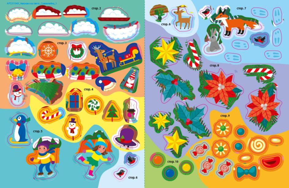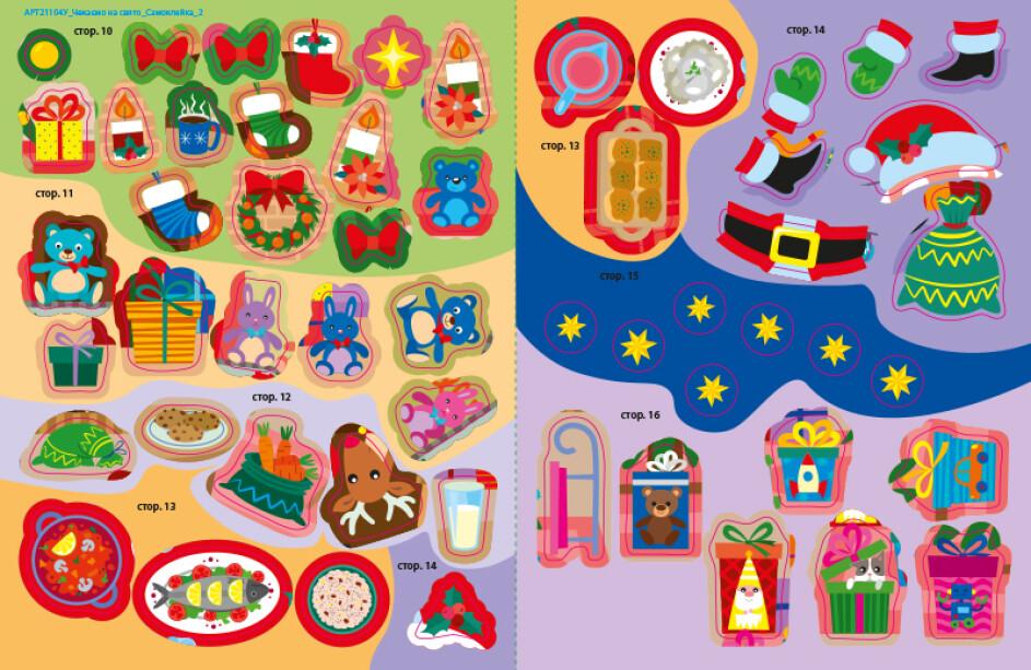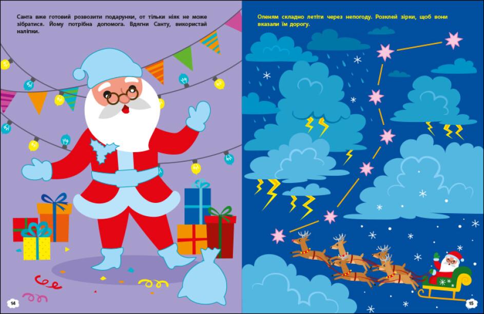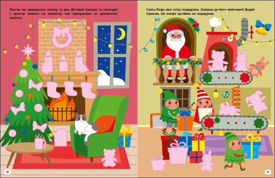 Ігрова-книжка з наліпками «Чекаємо на свято». Створюємо прикраси та прикрашаємо містечко, вулицю, будинок в очікуванні свята.