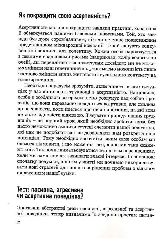 Знаєте що таке асертивність? Це здатність людини відстоювати свою точку зору, не порушуючи моральних прав іншої особи. Іншими словами - це вміння берегти свої власні кордони, не знищуючи кордонів сусіда.Особа асертивна не завжди спокійна та усміхнена, але вона вміє віднайти баланс між агресивністю і пасивністю, між своїми та чужими потребами. Борони своє - поважай чуже.Автор книжки ''Чи зі мною все гаразд?'' називає свою працю ''книжка для нічого столика''. Її не треба читати як роман - від палітурки до палітурки. Навпаки, вона завжди має бути під рукою, щоби за потреби можна було перегорнути кілька чергових сторінок і освіжити у пам'яті цікаві ідеї.Вчимося правильного підходу до життя, боремося з маніпуляціями, захищаємося самі від себе, роззброюємо агресивність, вчимося самоповаги, поважаємо ближнього, словом, читаємо книжку Мікеле Джанантоніо ''Чи зі мною все гаразд? Самоповага та асертивність''