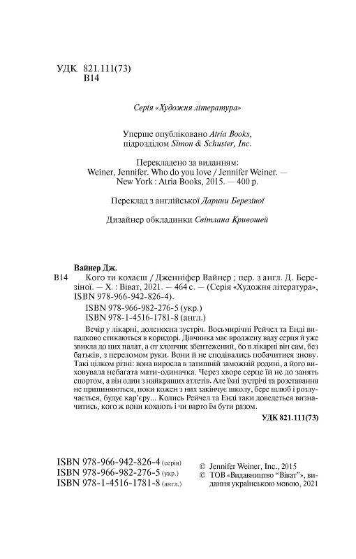 Кого ти кохаєш. Вайнер Дж.(Мяка) Vivat