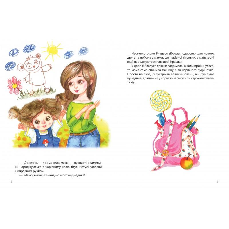 У кожної дитини є улюблена іграшка, яку вкладають спати, годують, беруть із собою на прогулянки... і пам’ятають усе життя. І кому ж не кортіло дізнатися, як з’явився на світ його іграшковий друг? Виявляється, неподалік існує чарівна країна, в якій чудова тітуся Натуся із помічниками створює найкращі м’які іграшки. І саме туди відправляється маленька дівчинка з мамою. Гайда за ними!