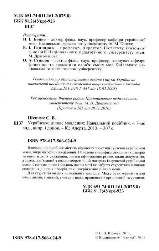 Українське ділове мовлення: Навч. посіб. 9-те видання. Алерта