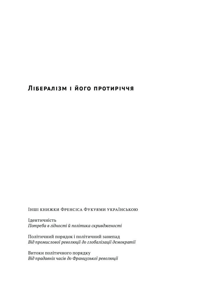 Провідний світовий інтелектуал і мислитель Френсіс Фукуяма відстежує радикальну поляризацію всередині ліберального табору та пов’язані з нею ризики. Переосмислюючи історичні й філософські витоки, автор знаходить як причини провалів та нинішньої саморуйнації лібералізму, так і сильні аргументи на його користь у майбутньому.