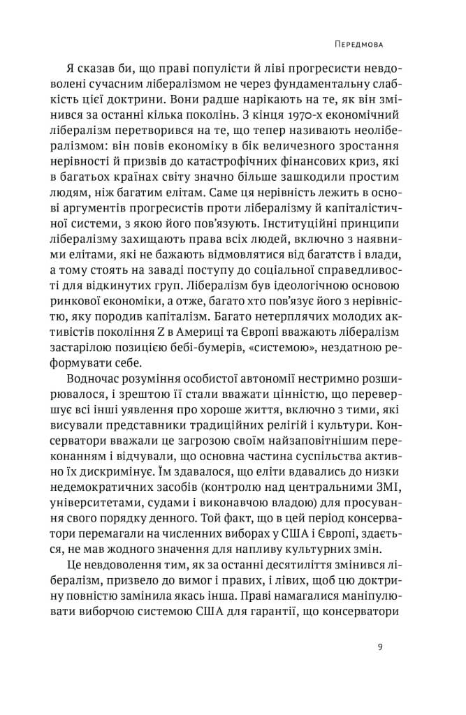 Старі компроміси в країнах розвинутого світу руйнуються на наших очах. Багато хто вважав ліберальне суспільство ідеалом, до якого потрібно прагнути, однак сьогодні перед ним стоять глобальні виклики. Неоліберали перетворюють економічну свободу і вільний ринок на релігійний культ, прогресисти нав’язують пріоритети інтересів окремих груп і глобальний перерозподіл доходів, посилюються правий та лівий популізми.