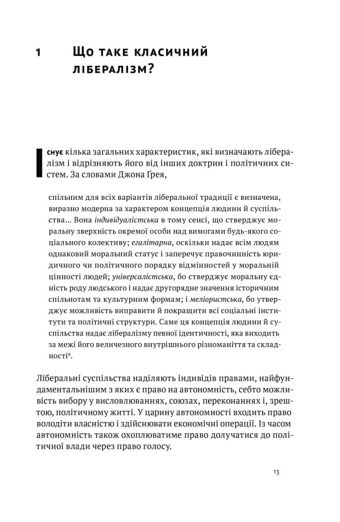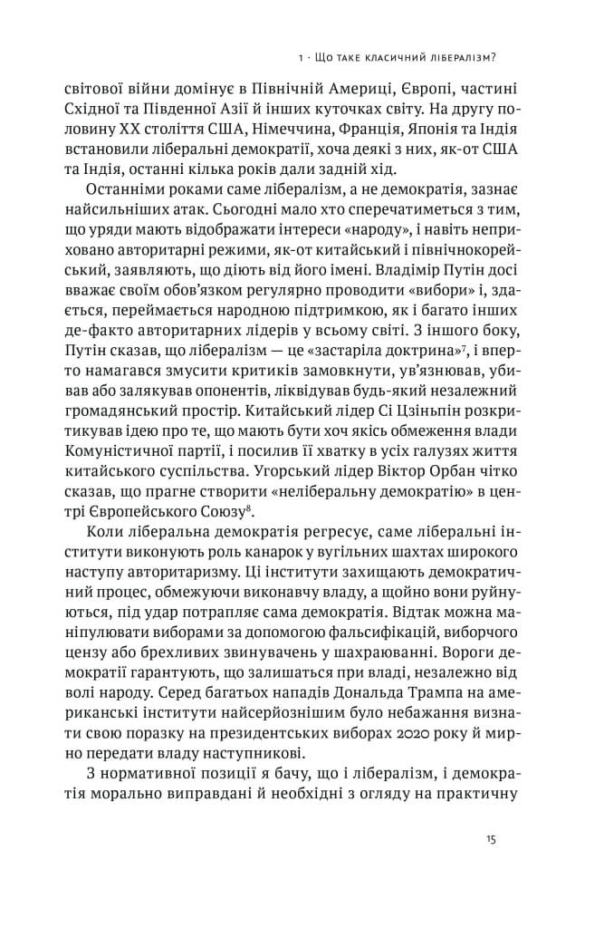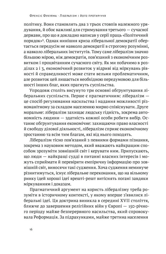 У книжці подано результати ґрунтовного дослідження різних форм нерівності та ідентичностей, джерел фінансових криз, деградації еліт, технологій маніпулювання населенням, порівняння лібералізму з ідеологіями в сучасних автократіях. Ця книжка корисна для розуміння політичної, економічної та соціокультурної мап світу, переваг і вразливостей популярних нині суспільно-політичних теорій, а також підводних каменів, які трапляються на шляхах демократичних країн.