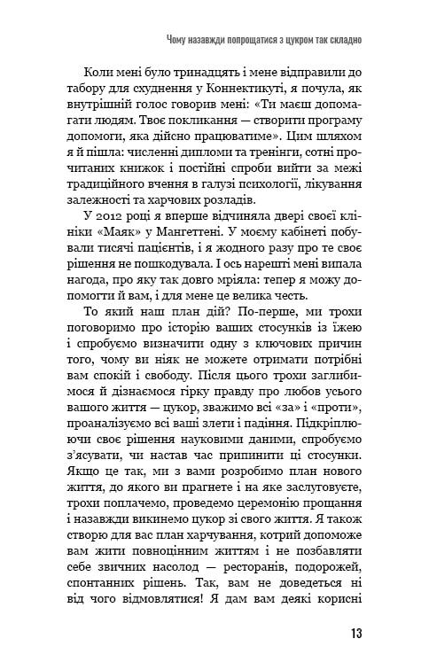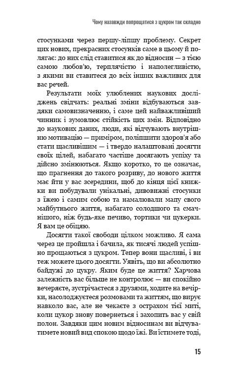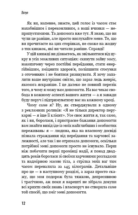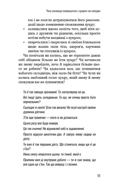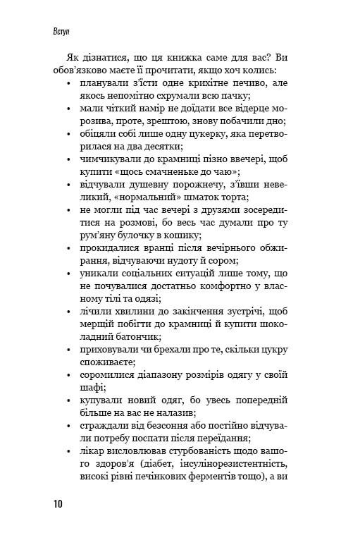Якщо ви мимохіть заїдаєте кожні хвилювання, стрес, безсоння й поганий настрій чимось солоденьким — ця книга для вас, бо пояснює, звідки взялася залежність від цукру і як її позбутися.