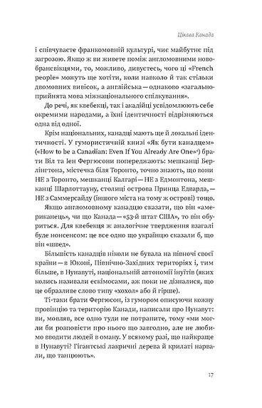 Канада — нудна й багата країна, де живуть люди, які досконало розмовляють двома мовами. Дороги тут ідеальні, а корупції немає. Засніженими преріями бігають стада бізонів, а десь поміж хмарочосами Торонто й Монреаля бородаті канадці грають у хокей. Це, безумовно, правда, коли йдеться про хокей і бізонів. Решта, сказати б, трохи перебільшення. Канада — яскрава й самобутня. Кожна провінція — інша, кожен регіон — особливий. Іммігрант у Торонто й іммігрант у Квебеку побачать дві різні країни. Людина з Ванкувера розкаже зовсім іншу історію, ніж людина з Ньюфаундленду. І зроблять вони це, найімовірніше, абсолютно різними мовами. Саме з цією Канадою в усьому її різноманітті у своїй книжці нас знайомить Євген Лакінський.