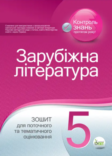 Зарубіжна література. Зошит для поточного та тематичного оцінювання, 5 кл. Карліна Л.О., Андронова Л.Г. ПЕТ