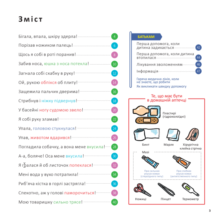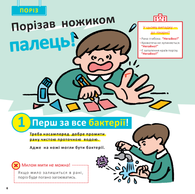Надзвичайно корисна книжка, яка зрозуміло та лаконічно пояснює малечі, що робити при різних травмуваннях, якщо раптом поруч немає дорослих.