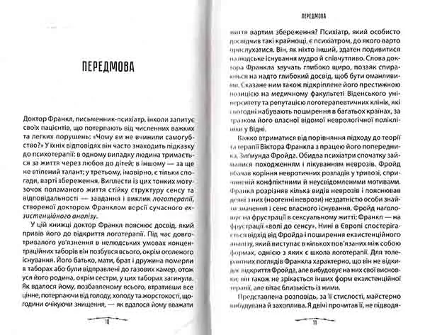 «Людина у пошуках справжнього сенсу» - одна з книжок, яка найбільше вплинула на життя людей у 20 столітті. Її автор, психолог та філософ Віктор Франкл, у 1942 році потрапив до концтабору. Як і багато інших в’язнів він намагався вижити та зберегти почуття людської гідності. І саме під час найжахливіших випробувань Франкл прийшов до висновку, що людина може здолати всі труднощі, коли її життя наповнене змістом, має мету.