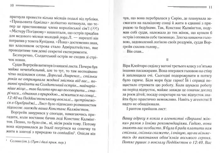 Аґату Крісті знають у всьому світі як королеву детективу. Продано близько мільярда примірників її творів англійською мовою, ще один мільярд — у перекладі 100 іноземними мовами. Вона — найпопулярніший автор усіх часів. За кількістю перевидань її книжки поступаються лише Біблії та творам Шекспіра.Роман «І не лишилось жодного» було екранізовано безліч разів, зокрема відомим є двосерійний фільм «Десять негренят».Десятеро незнайомців опинилися на далекому Солдатському острові: усі отримали дивне запрошення приїхати сюди, до розкішного будинку. Однак поки вони не розуміють, хто і для чого їх викликав… Згодом починається жахіття: хтось жорстоко й вигадливо вбиває гостей, а зі столу, на якому стояло рівно десять порцелянових статуеток, перед кожним убивством зникає одна… Як ця моторошна історія пов’язана із дитячою лічилкою? І, головне, хто наступний?