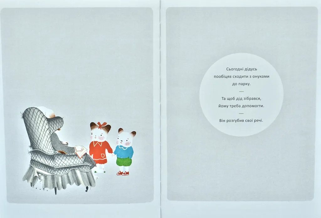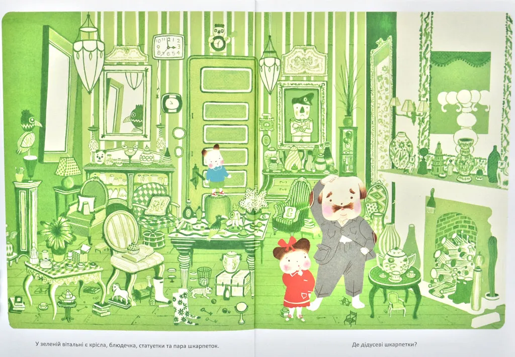 Сьогодні дідусь пообіцяв сходити з онуками до парку.Та щоб дід зібрався, йому треба допомогти.Він розгубив свої речіЦя книжка має цілу колекцію дивовижних цікавинок на кожній сторінці. Вона зачарує малих і дорослих шукачів дідусевих розгублених речей.