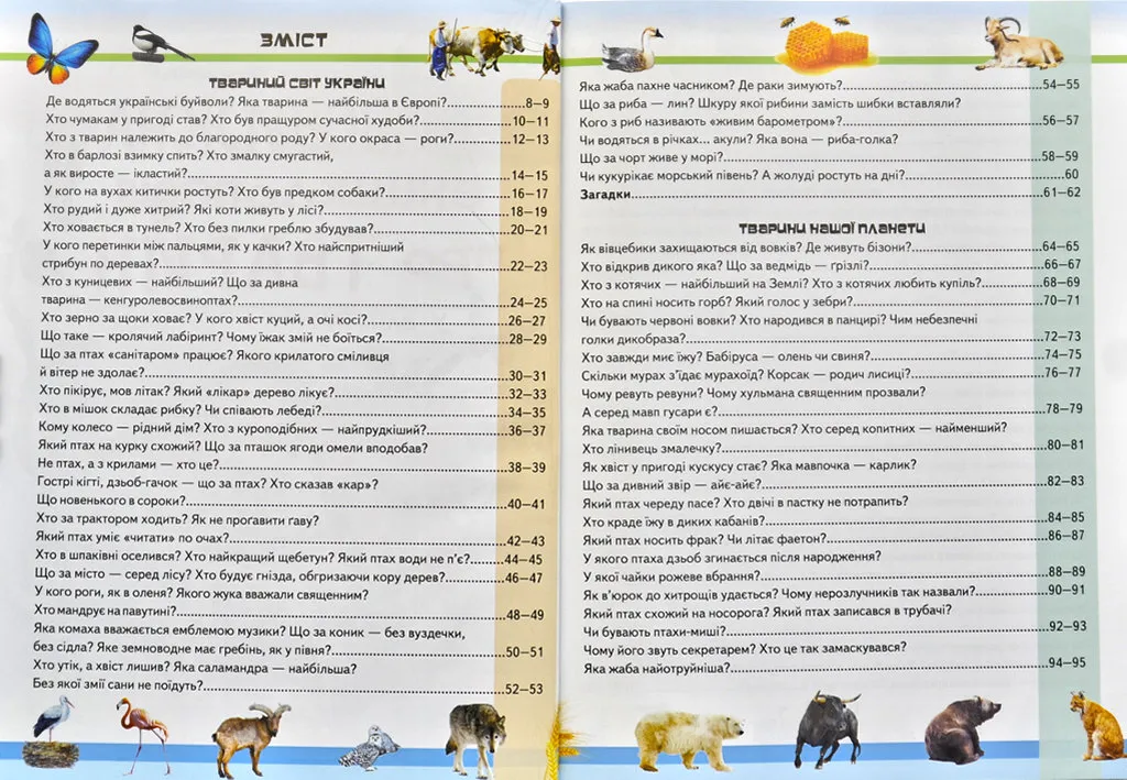 Завдяки нашій енциклопедії ви зможете здійснити своєрідну мандрівку українськими лісами, степами, горами, прісними водоймами і морями — Чорним та Азовським. Там усюди живуть дивовижні, сумирні й грізні, а часом кумедні звірі та птахи, риби, плазуни й комахи. На вас чекають незабутні враження від знайомства з фауною рідної батьківщини.