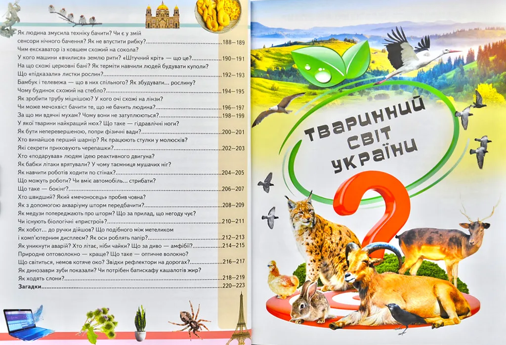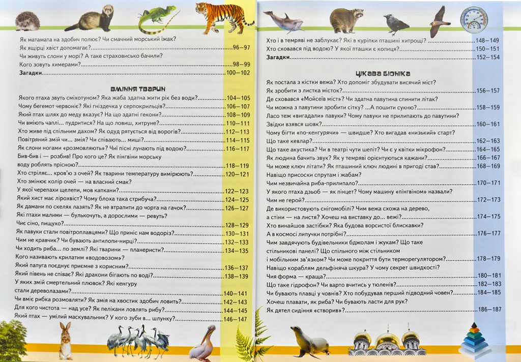 А ще відкриєте для себе сучасну науку — біоніку, зможете зазирнути в «лабораторію» природи й дізнатися, як тварини й рослини допомагають людині створювати нові прилади і механізми, розв’язувати різноманітні інженерні завдання. І в наші дні вчені різних країн з успіхом застосовують те, що геній природи давно вже створив. Але її мудрий ключ і далі відкриває перед нами все нові й нові дивовижі.