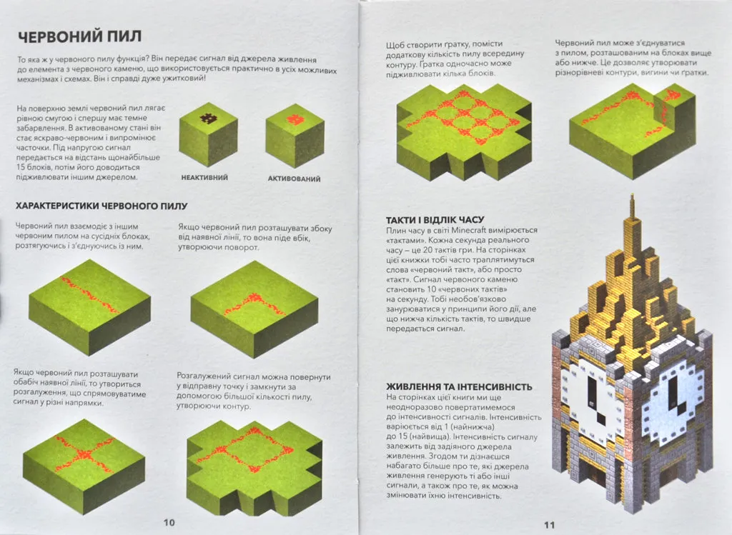 Відкривай нові функції елементів червоного каменю, дізнавайся, як будувати робочі схеми, і потім, використовуючи набуті навички, створюй хитромудрі споруди. Завдяки інсайдерській інформації та підказкам від розробників Mojang цей довідник з проектування у світі Minecraft стає максимально докладним.