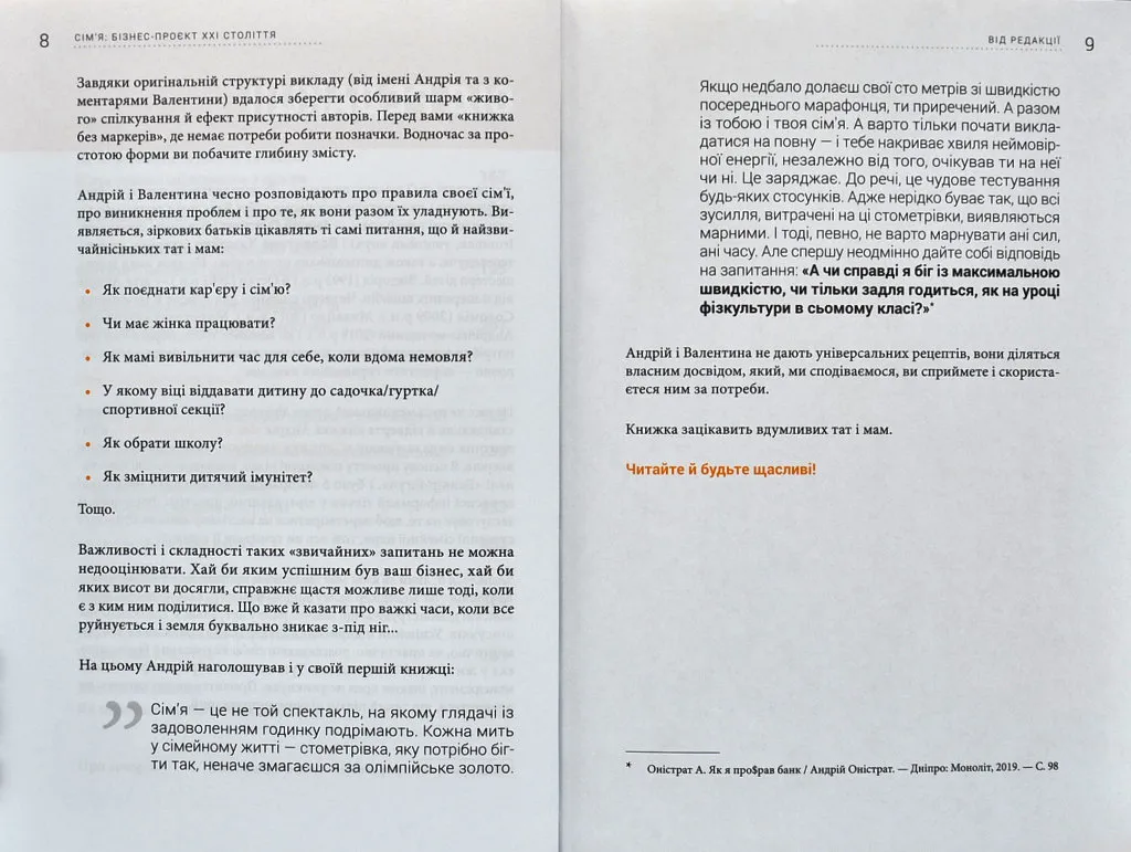 Хочете відкрити найважливіші секрети створення щасливої родини? А розібратися в тому, як виростити здорових, відповідальних, всебічно розвинених і адаптованих до життя в соціумі дітей? Тоді книга Андрія Оністрата, відомого спортсмена і бізнесмена, учасника мотивуючих книг і роликів, і його дружини Валентини Хамайко, популярної телеведучої і прекрасної матері чотирьох чудових дітей, - саме те, що вам потрібно.