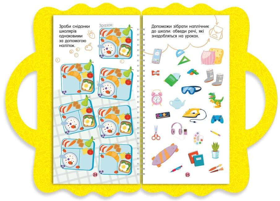 З «Валізкою до школи» дитина опанує набір знань і вмінь, що стануть у пригоді майбутньому першокласникові. Завдання охоплюють такі теми як форми, кольори, перші навички лічби, письма, логіки та спостереження за довкіллям. Багато вправ присвячено тренуванню креативного мислення й творчості. «Валізка» не схожа на звичайну книжку, а тому робота над завданнями буде сприйнята дитиною, як весела гра. А наліпки, трафарети, декоративний папір та багаторазові сторінки зроблять цю гру ще більш бажаною!