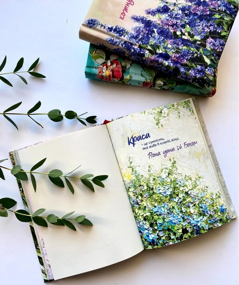 Записник прикрашений витонченими ілюстраціями на основі робіт художниці Олени Онуфрів, які додають витонченості кожній сторінці. Це не лише практичний інструмент для організації часу, а й справжній супутник для глибоких роздумів та духовного зростання.