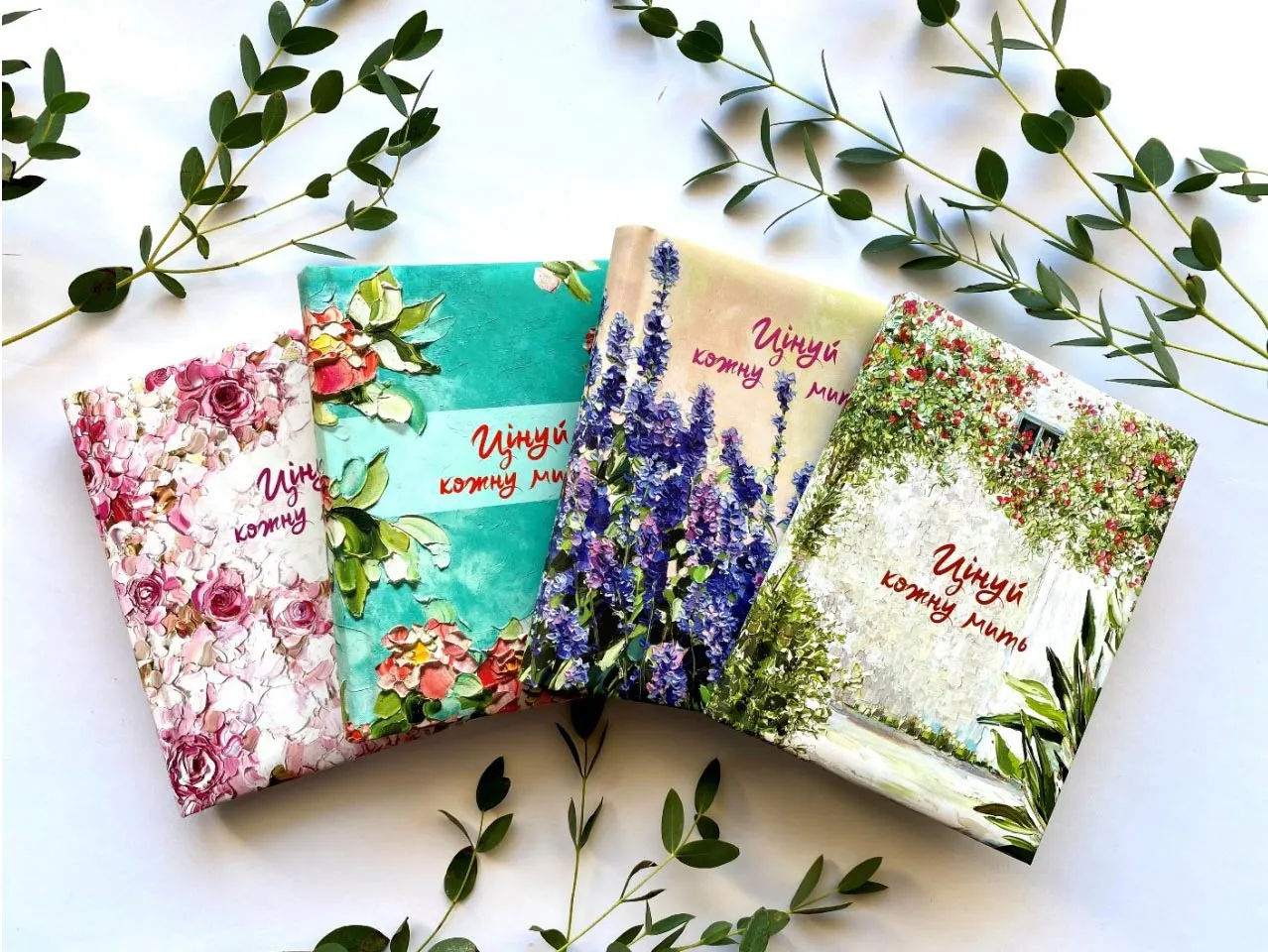 Записник прикрашений витонченими ілюстраціями на основі робіт художниці Олени Онуфрів, які додають витонченості кожній сторінці. Це не лише практичний інструмент для організації часу, а й справжній супутник для глибоких роздумів та духовного зростання.