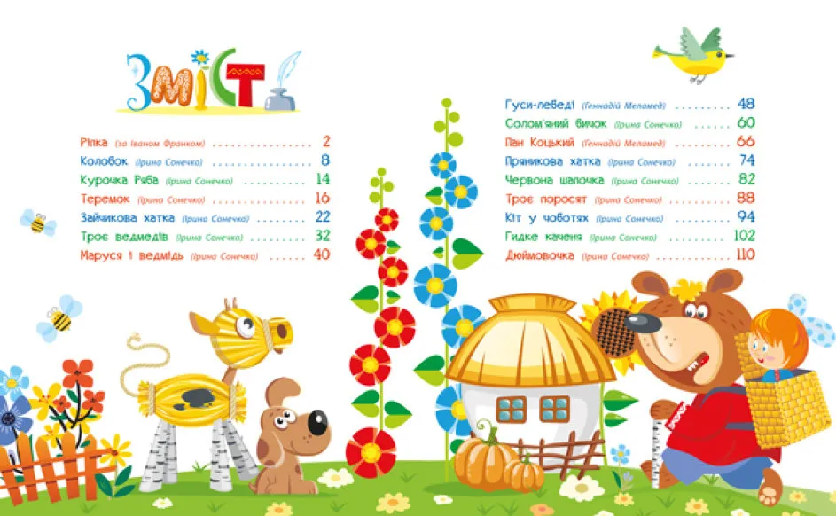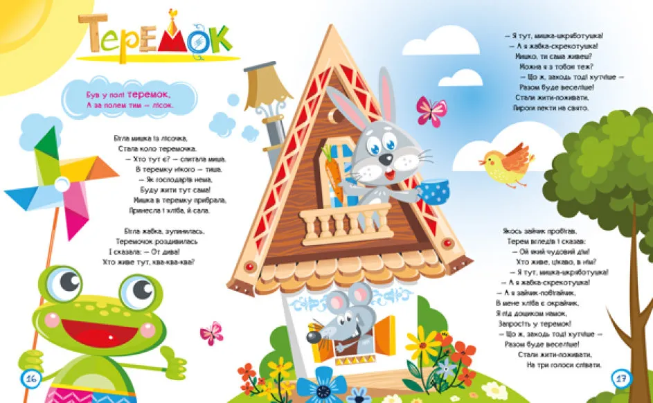 У яскраво ілюстрованій книжці — 16 найулюбленіших казок малечі, написаних у легкій поетичній формі. З цією книжкою ви проведете багато приємних хвилин, адже навіть знайомі твори у віршованих рядках стають незвичними, їх весело читати й легко вивчити напам’ять. Для кожного малюка тут знайдеться чудова історія на його вік і смак. Починається книжка з казок для найменших, а продовжується — для більш дорослих дошколяриків. Книжка вигадливо проілюстрована талановитим українським художником Віктором Корягіним.