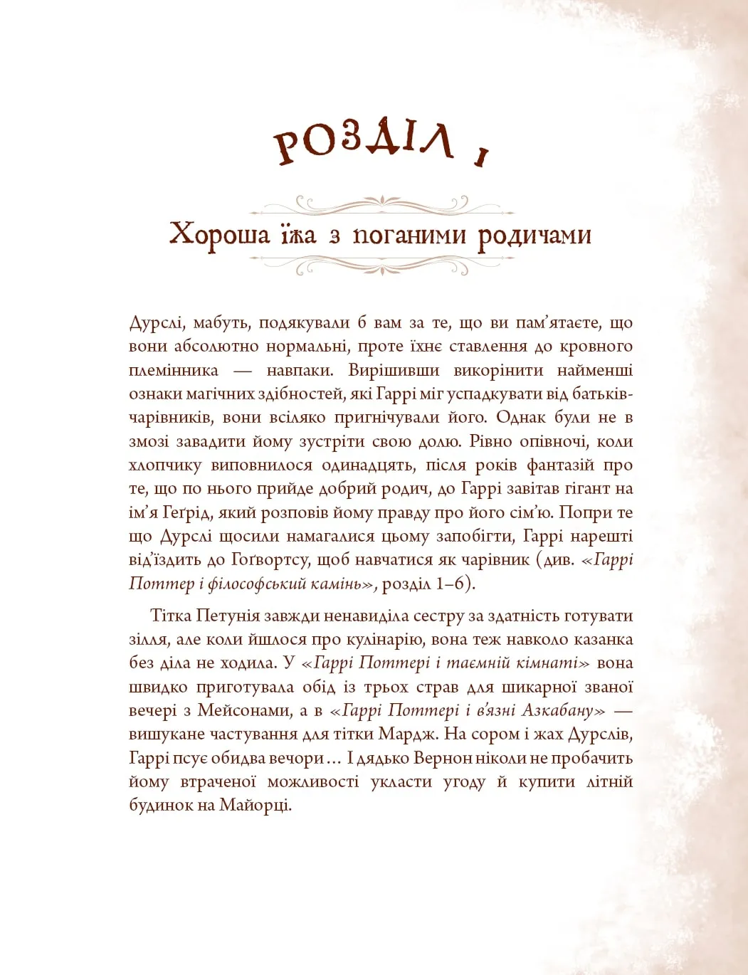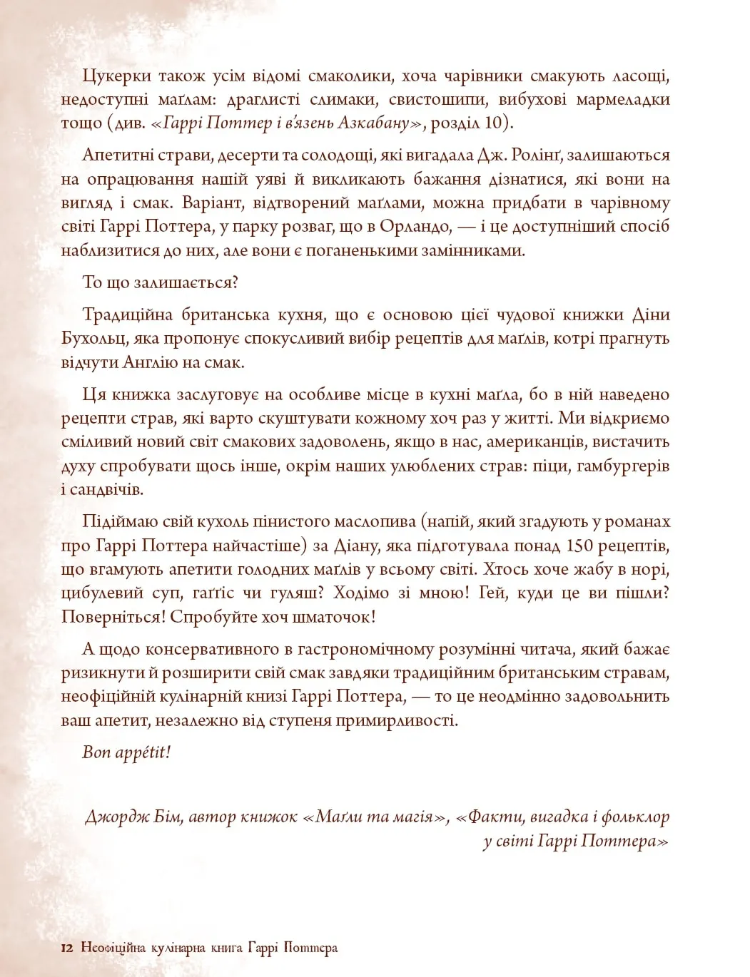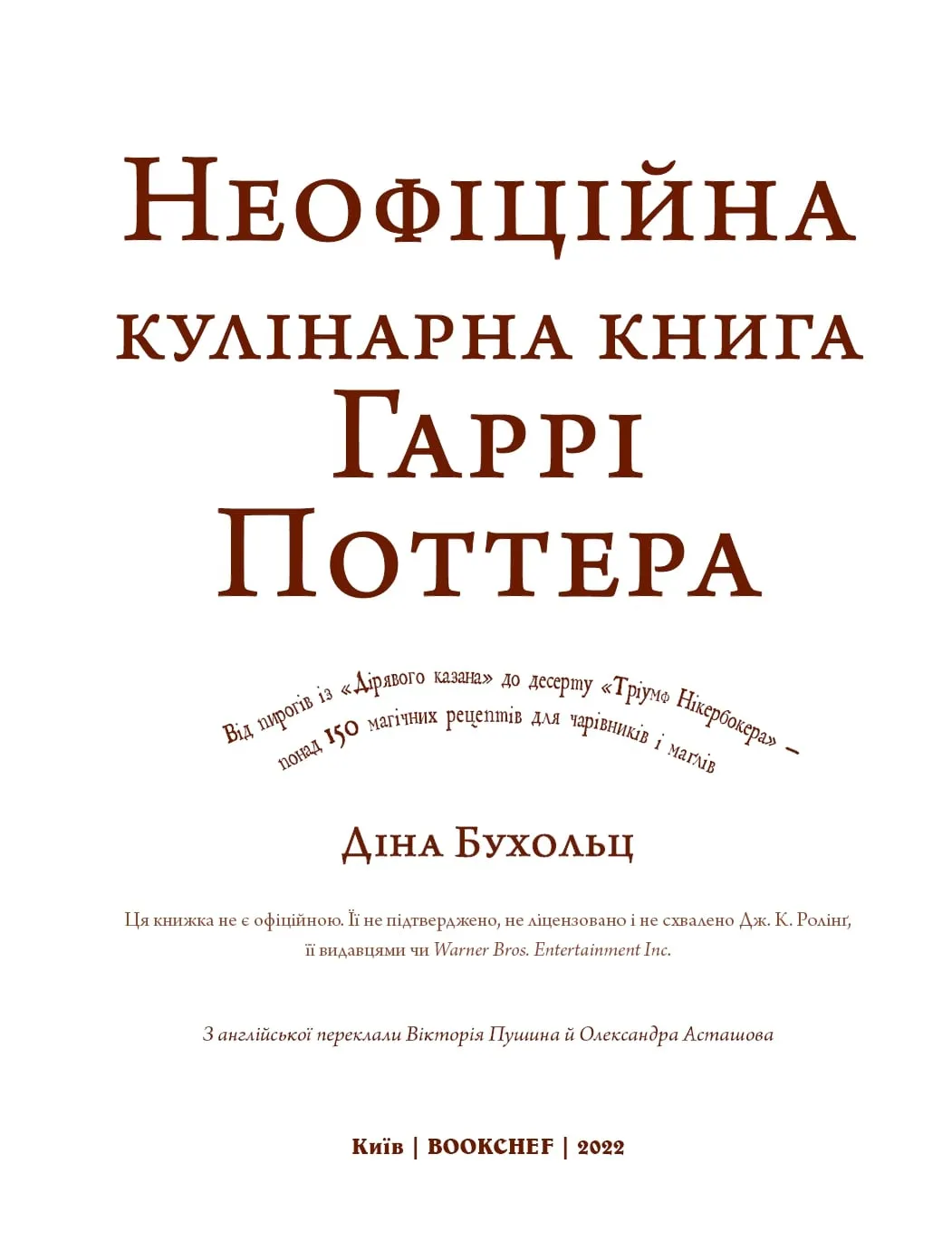 Прихильники книг про Гаррі Поттера тепер зможуть потрапити у казковий світ, де живуть маги й чарівники. Для цього потрібно докласти трошечки зусиль, використати дещицю продуктів і обрати рецепт із «Неофіційної кулінарної книги Гаррі Поттера». Смакуючи гарбузовим печивом, пончиками з джемом, солодкою помадкою або чимось іншим, ви зможете на деякий час стати одним із героїв захопливих історій про хлопчика-чарівника. Подарункове видання, оформлене під старовину, містить докладні рецепти, зібрані в десяти розділах. Завдяки точним інструкціям ви легко зможете приготувати будь-яку страву.