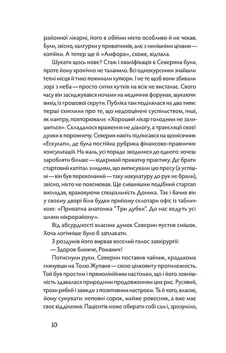 Книга "Танці з кістками". Проста, на перший погляд, історія про патологоанатома-невдаху. Северина не цінують на роботі й мало платять, з особистим життям чоловіка відбувається щось незрозуміле, самооцінка на нулі. Тож перебуваючи практично на дні, він одразу ж хапається за можливість підзаробити. Так, пропозиція не зовсім легальна, так, навряд чи можна чекати чогось доброго від ринку трансплантації органів, але так спокусливо нарешті влаштувати собі забезпечене життя. Зрештою, Северин має забрати в уже мертвих людей якусь дрібничку, те, що їм і так не потрібно. Поки що у мертвих людей, поки що дрібничку.