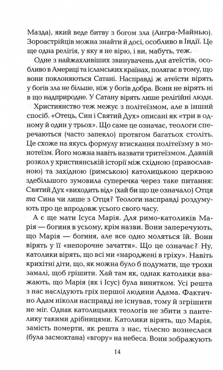 Книга провокує на глибоке осмислення релігії, закликає замислитися над тим, кому і навіщо потрібна віра, та чи може сучасна людина жити без неї.