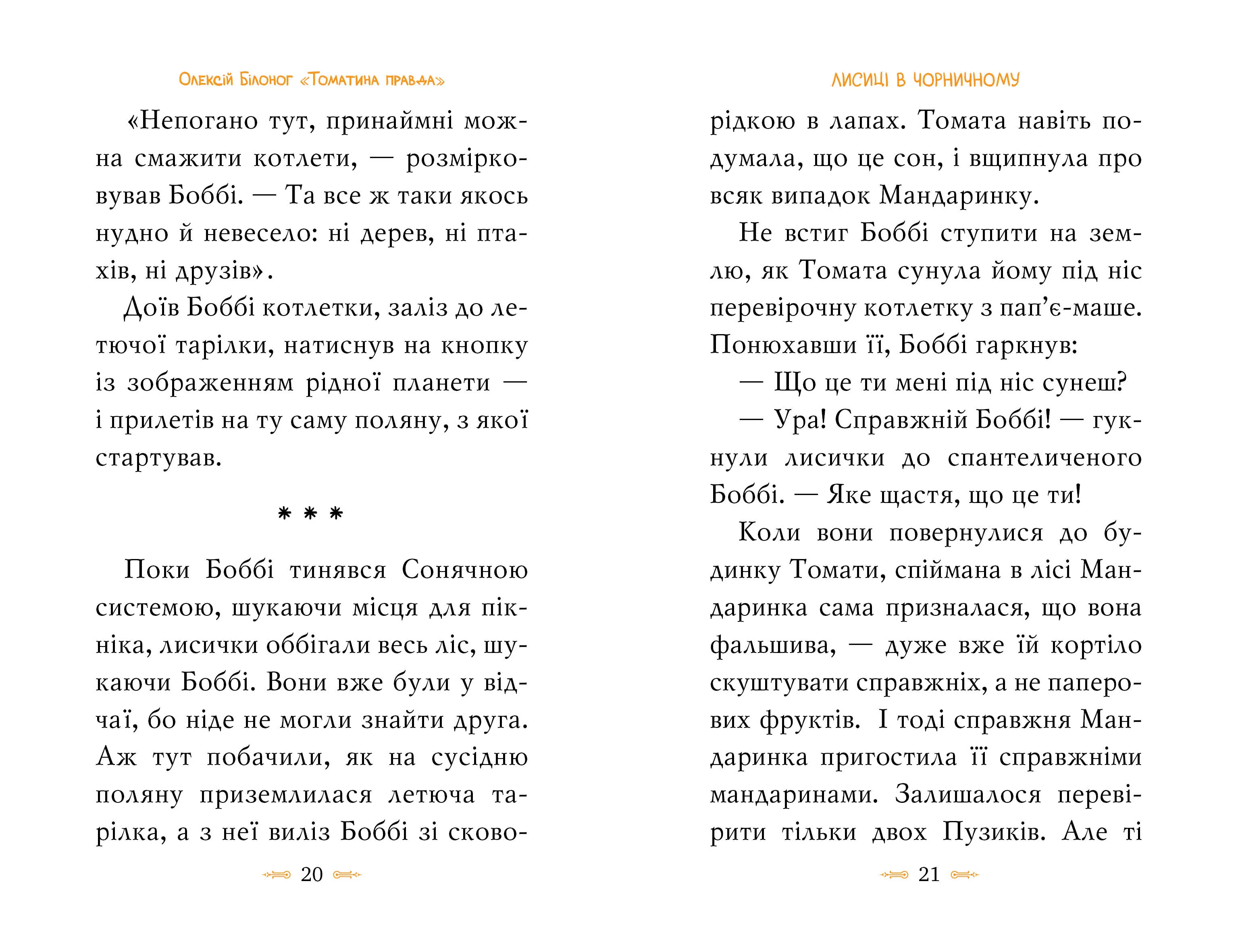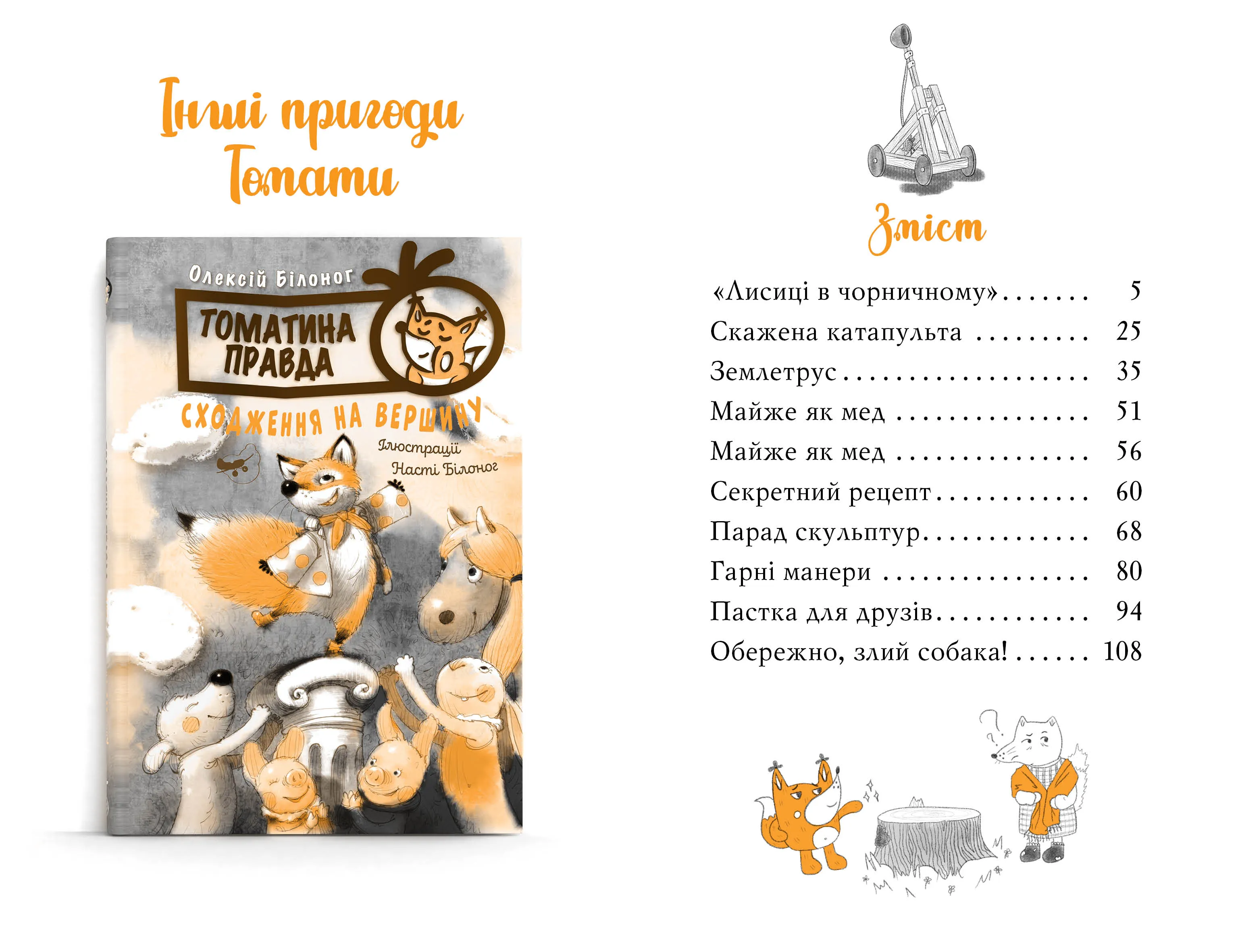 Друзі, пам’ятаєте веселу лиску Томату, що живе в Десятому Лісі? Ту саму, яка знає все і про всіх? Вона ще газету видавала, «Томатина правда» називається? Тепер винахідлива і добра лиска взялася рятувати ліс від інопланетян, навчати друзів гарних манер, влаштовувати пригоди на їхню голову, створювати скульптури…Про нові дивовижні пригоди Томати й інших мешканців Десятого Лісу читайте в цій веселій книжці.