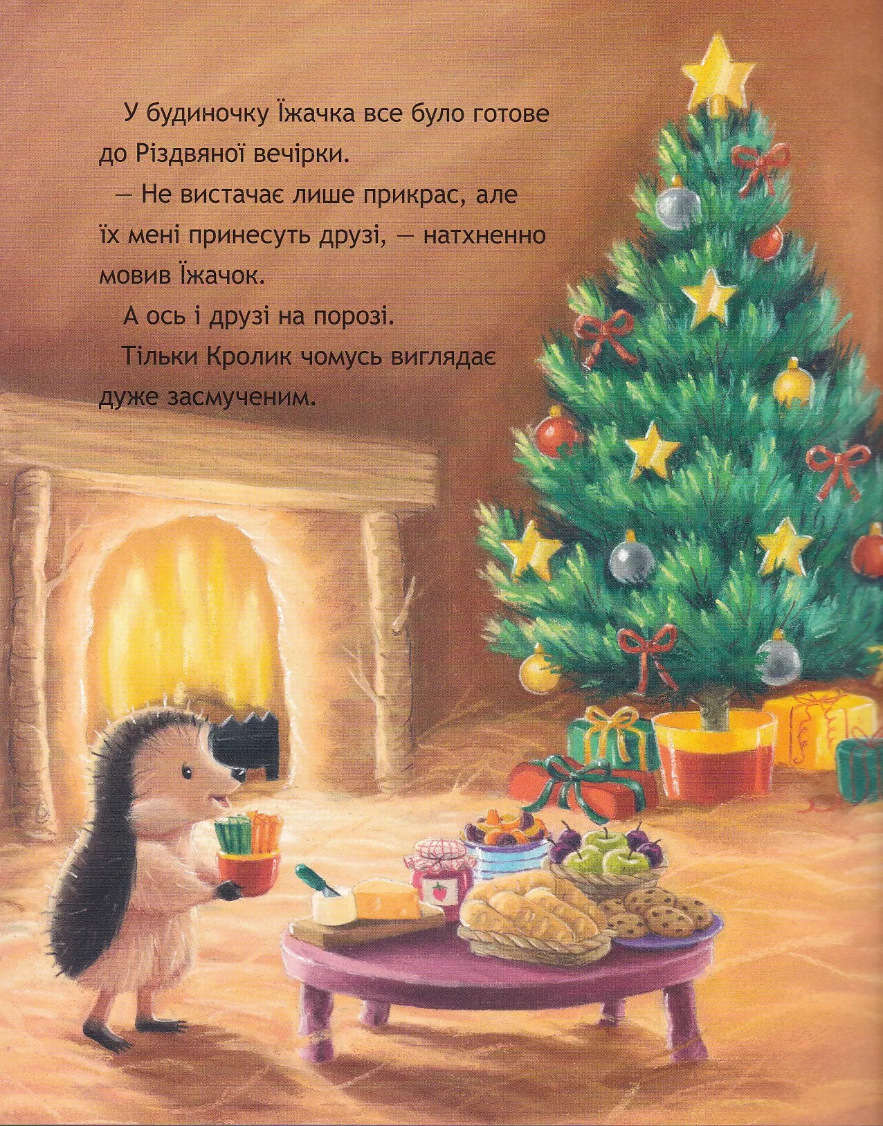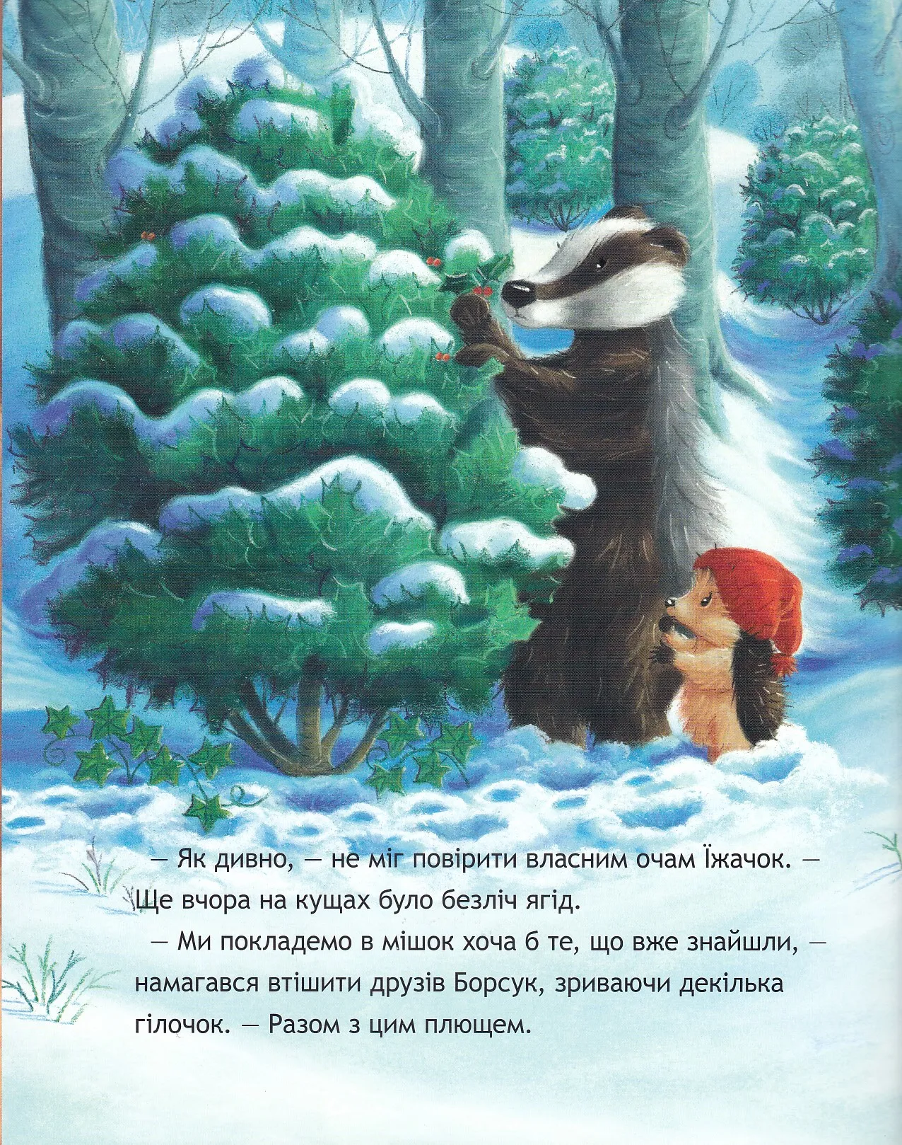 Хтось вирішив зіпсувати Різдво лісовим друзям - Їжачку, Лисичці, Кролику, Барсучку і Кротику. Спочатку забрав усі ягоди з падуба, якими звірята збирались прикрасити кімнату до свята, а потім ще й вкрав улюблений шалик Кротика.Невже свято зіпсовано?Та наші звірята не з тих, хто буде сумувати! Вони вирішують провести власне розслідування і йдуть вглиб лісу по величезних слідах, в які упав Кротик. Ох і страшно! Хто там ховається за тими слідами? І навіщо йому ягоди та шалик?Подорожуючи цією захопливою історією, ваша дитина стане справжнім детективом-помічником лісових друзів і дізнається, яку таємницю приховує темна печера.