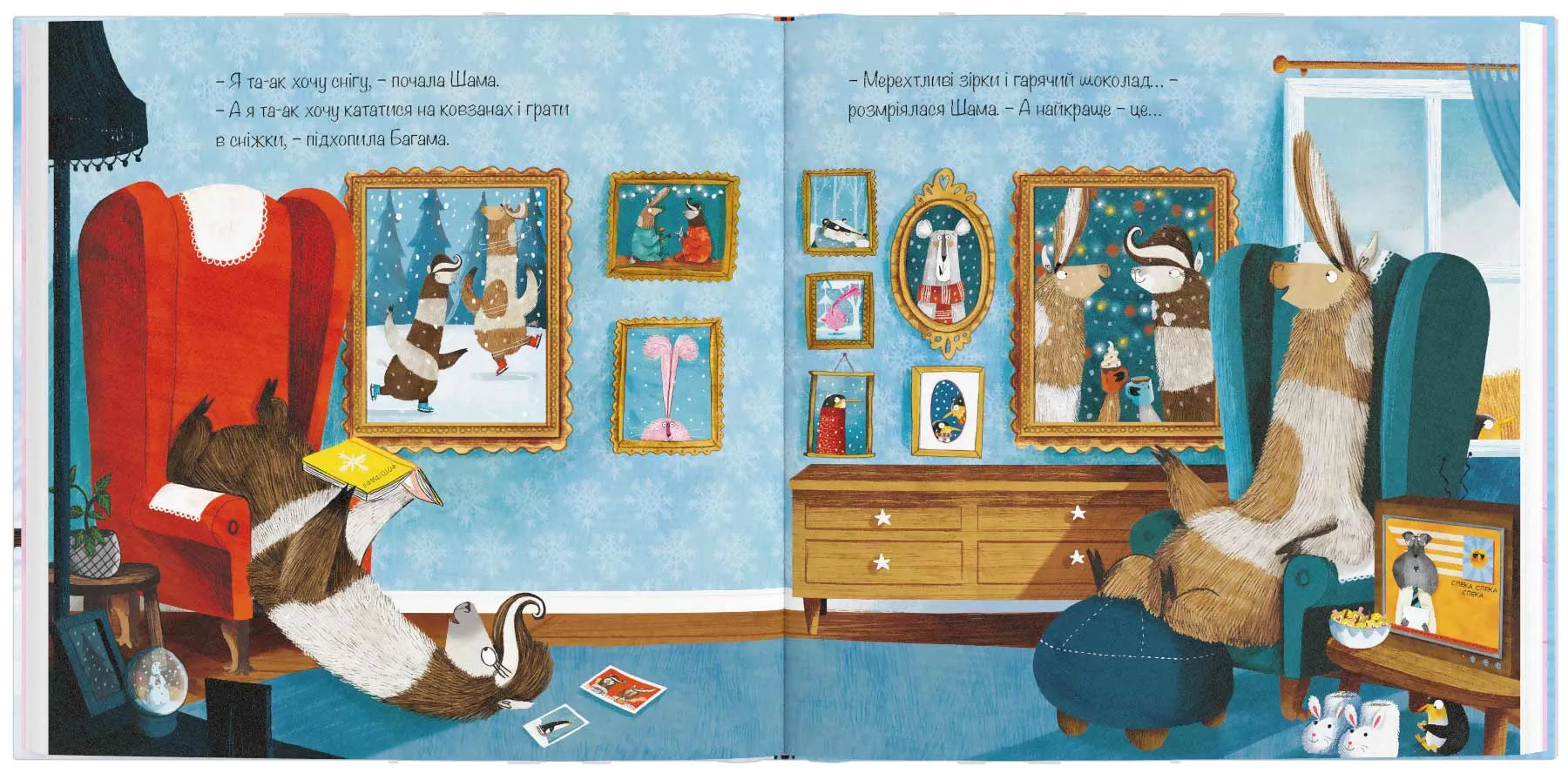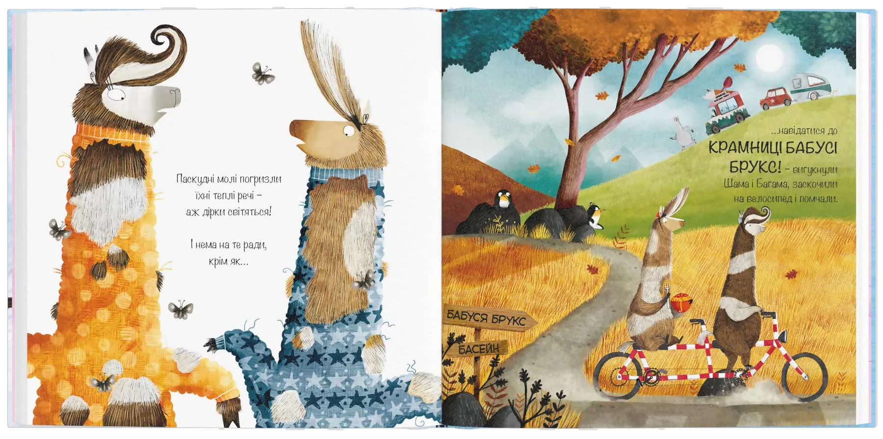 Чому варто придбати- Взимку зігріє теплий светр і весела історія про те, як двійко лам влаштували перегони за найкращими светрами.
