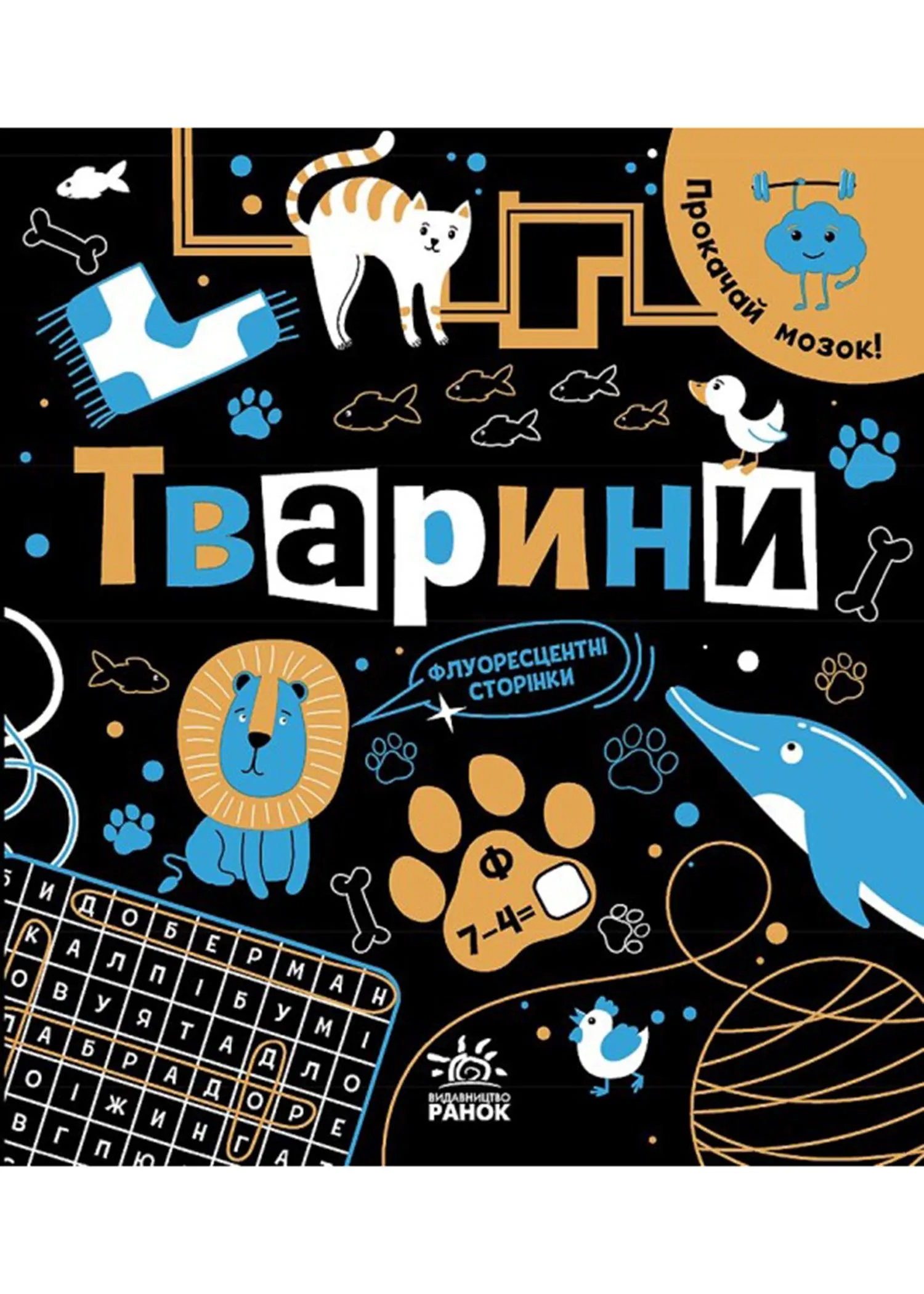 Цю книжку ми створили для тебе, мізкуватий шанувальнику милих тваринок. Адже всередині безліч завдань, які змусять тебе добряче посушити голову, і кожне — про тварин. Виконуючи їх, ти навчишся встановлювати послідовність, читати та обчислювати, задіювати логіку, увагу і уяву. Ребуси з пандами, математичні приклади з песиками, лабіринти на кінних перегонах... Усе це (і багато іншого) на суперяскравих флуоресцентних сторінках. Прокачай мозок яскраво!