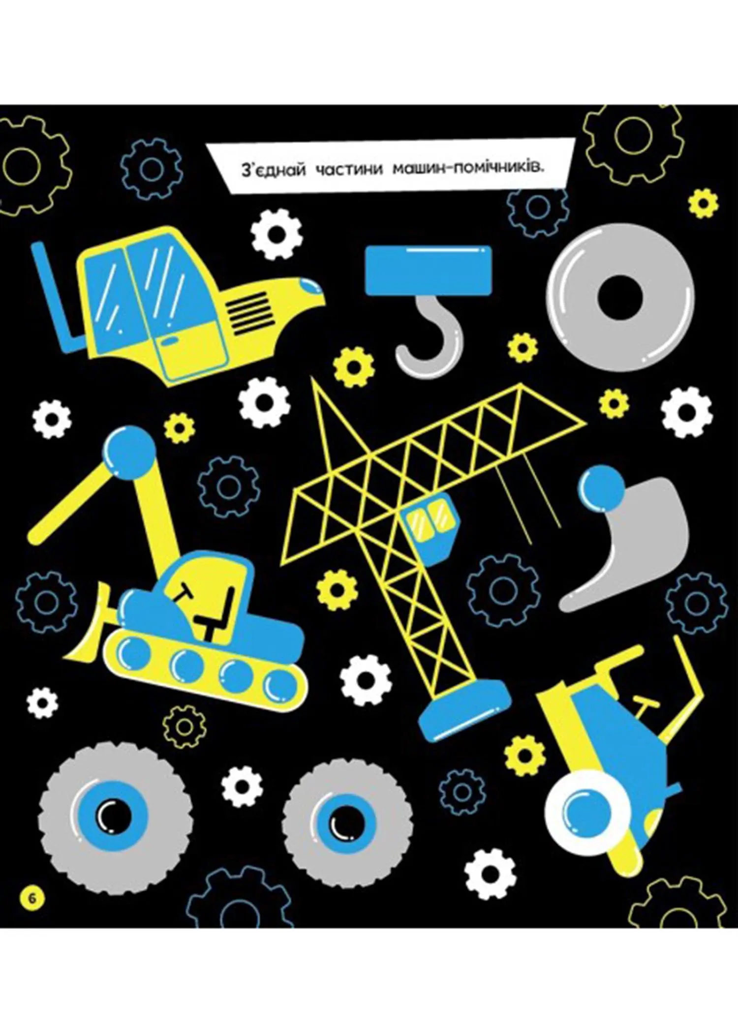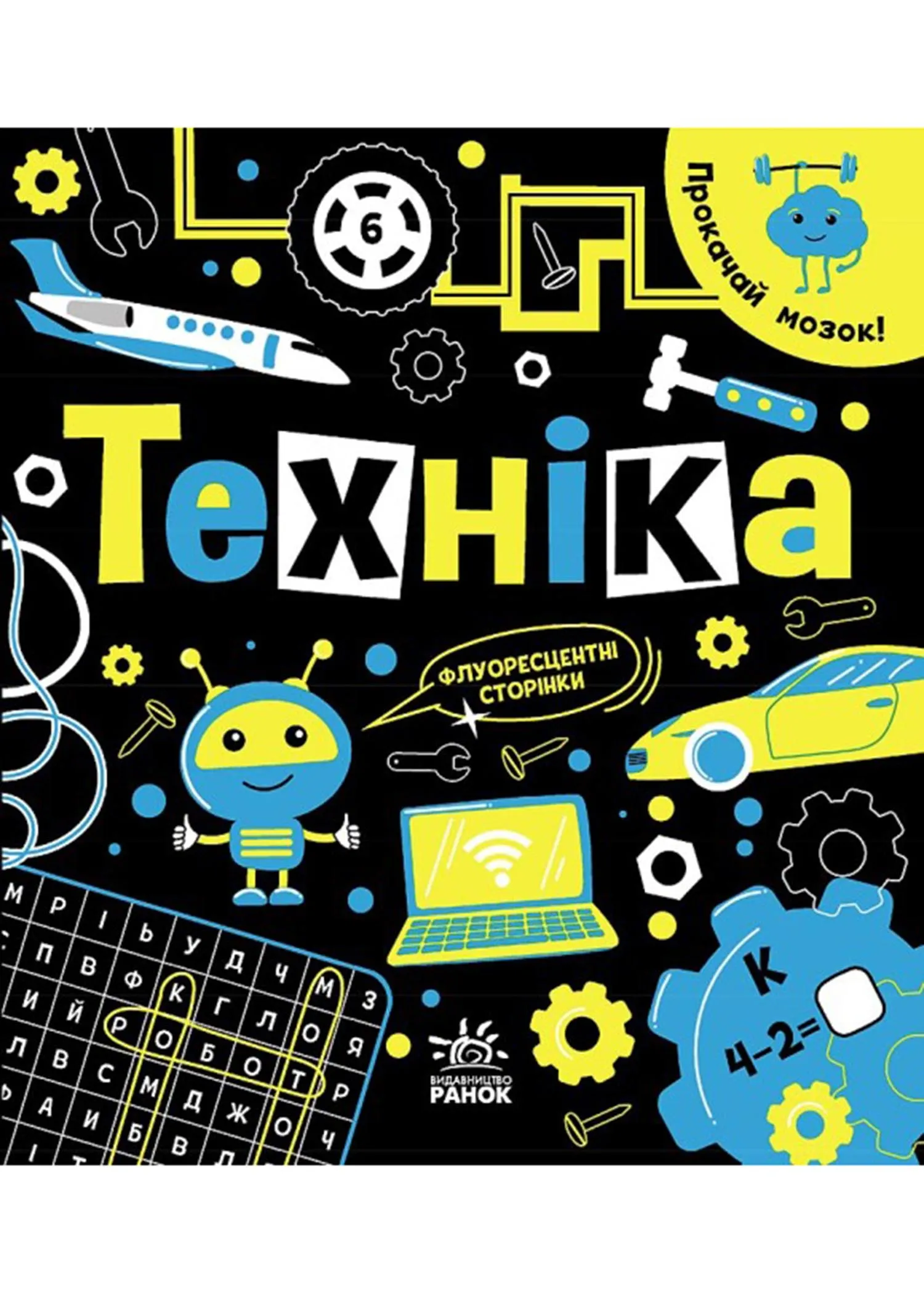 Цікавлять техніка та різноманітні машини? Тоді ця книжка-активіті по-справжньому захопить тебе! На її сторінках є багато головоломок, ігор та пригод із технікою. Ти будеш шукати, малювати, лічити, «прокачуючи» свої навички. А завдяки флуоресцентним сторінкам завдання про транспорт, роботів та інструменти закарбуються в пам'яті. Нумо розвиватися яскраво!