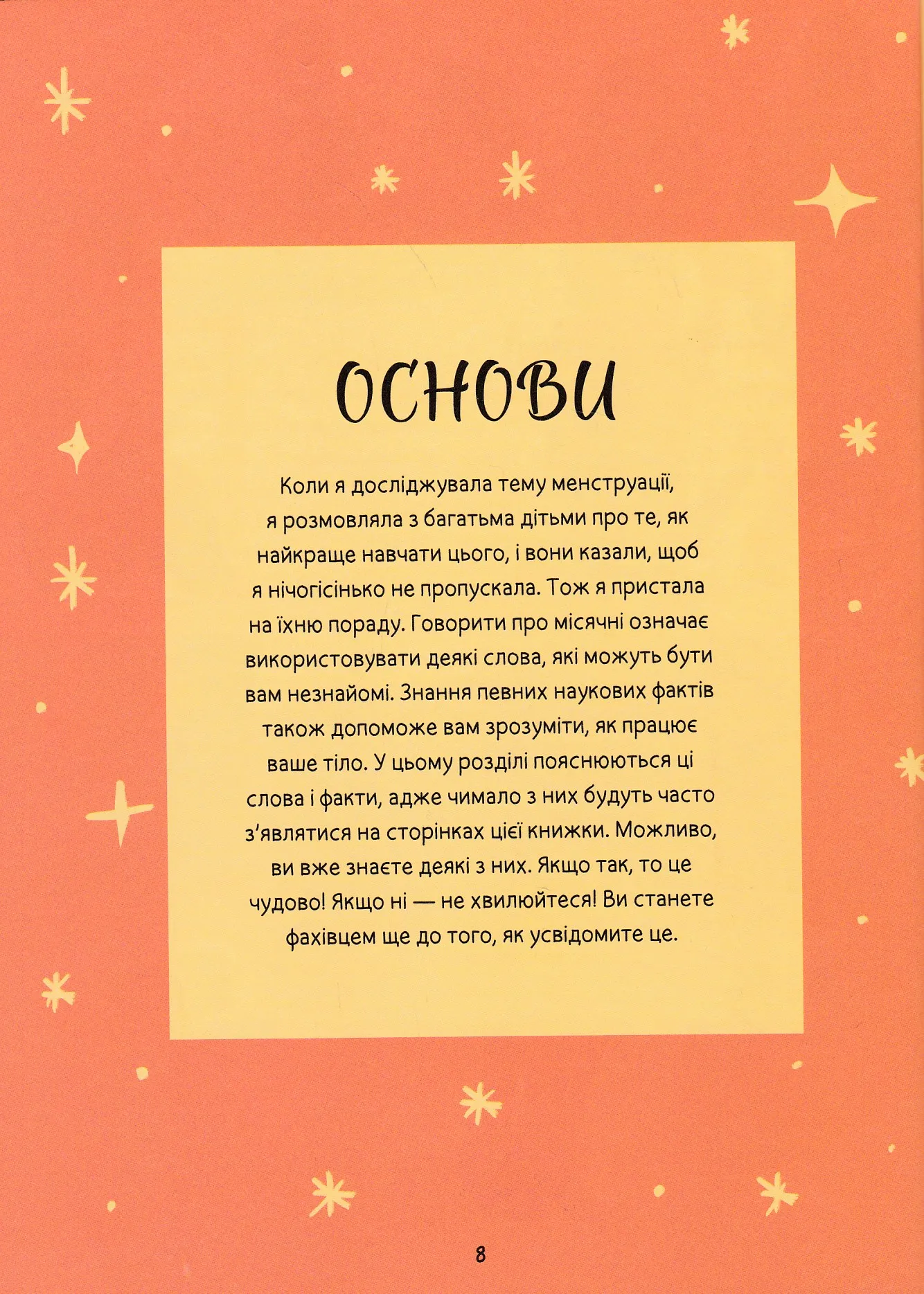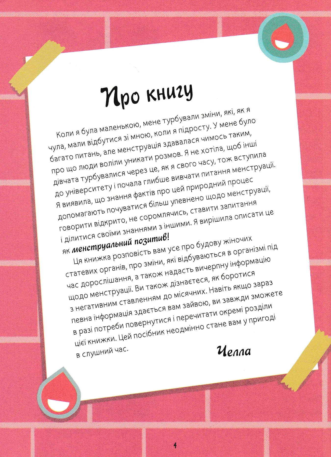 «Всебічний, відкритий і радісний погляд на все, чого потребує молодь».EMMA БАРНЕТТ«Мої (не)критичні дні» звеличує те, на що здатне ваше дивовижне тіло, і надає вам усе необхідне, щоб бути готовими... і ВІДПОВІДАЛЬНИМИ. Цей наповнений фактами посібник із менструального позитиву відповідає на всі ваші основні питання, як-от що таке вульва, на що насправді схожі місячні і що станеться, якщо кров забруднить ваш одяг.За допомогою позитивних та чесних порад активістка та педагог Челла Квінт розвінчує забобони, руйнує поширені міфи та бореться з соромом через місячні, ділячись своїми особистими історіями та надаючи практичну інформацію про засоби для менструації та відстеження циклу. Весело, повчально і для кожного. «Мої (не)критичні дні» містить усе, що вам потрібно знати, аби стати менструально-позитивними!