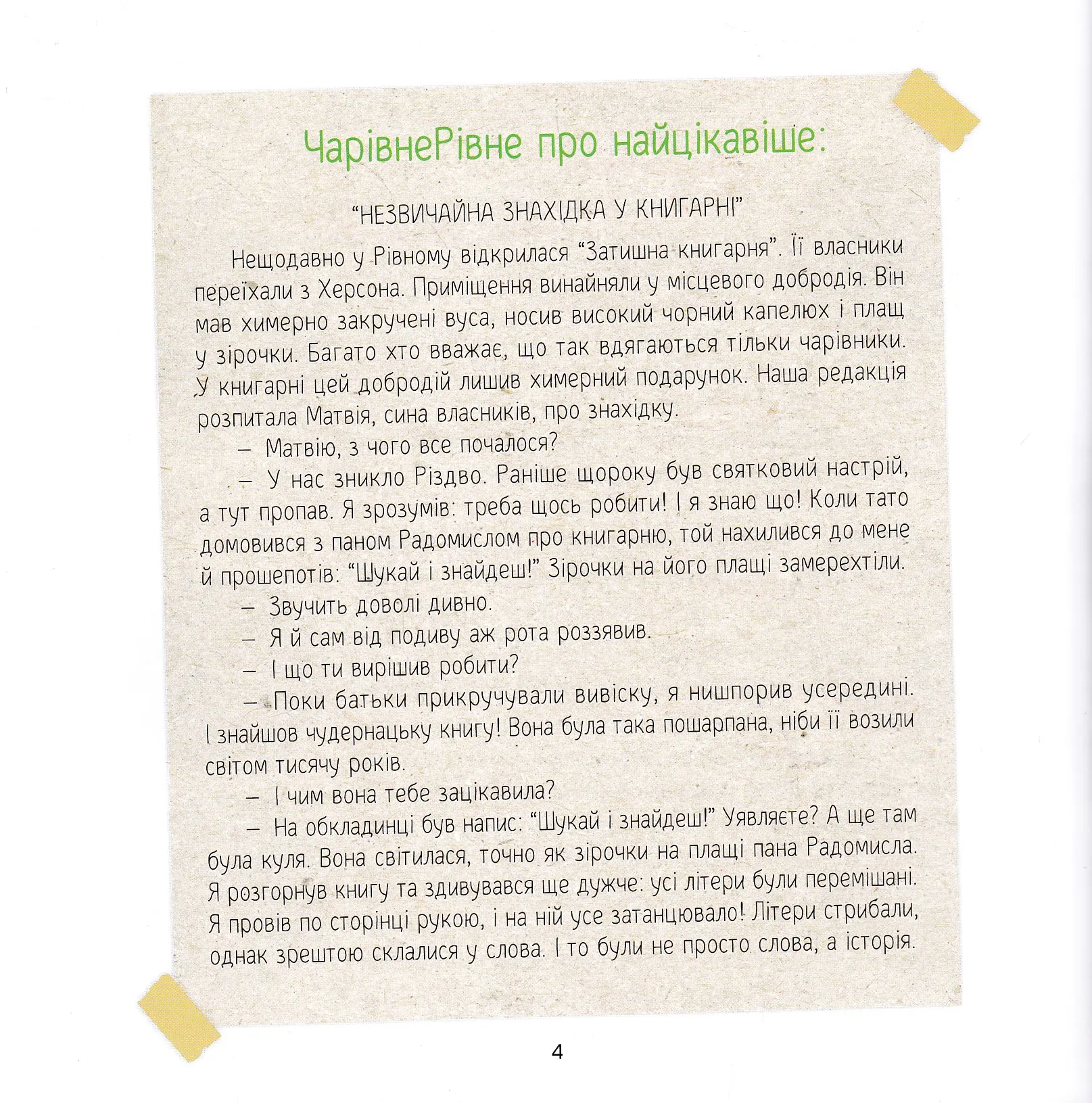 Матвій щойно переїхав з батьками до Рівного. Поки тато з мамою облаштовують книгарню, хлопчик знаходить незвичайну книгу з дивним знаком.