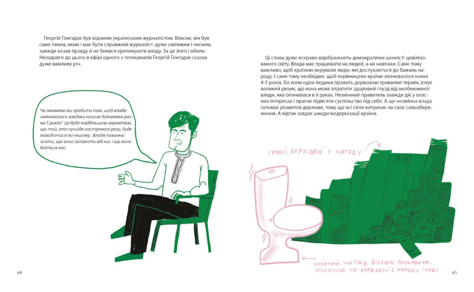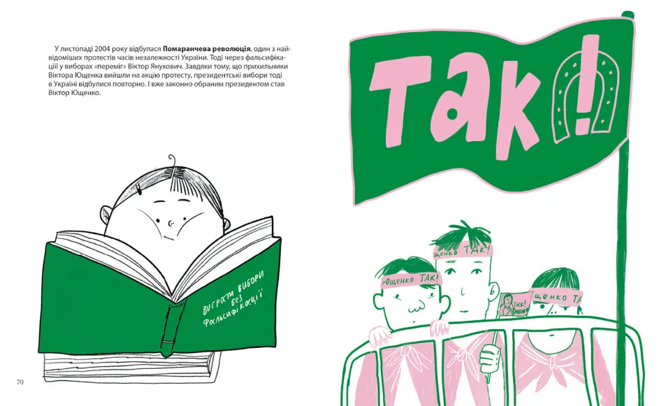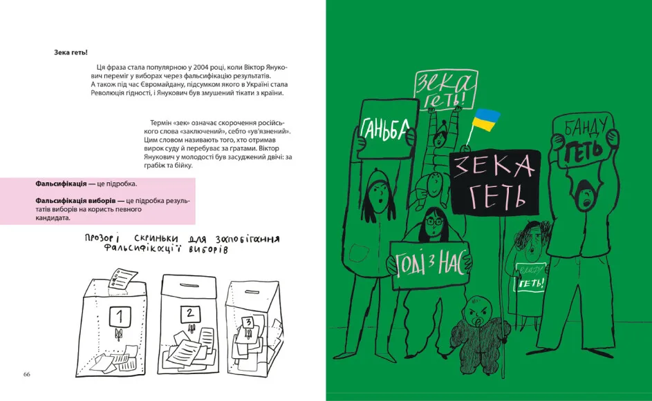 «Геть!» — вигук, знайомий усім українцям. Він починає зміни в країні, стає рушієм революцій та зрештою допомагає досягти справедливості. Уміння висловлювати протест — суперсила нашого народу. Бо саме так нам вдається відстоювати власні ідеї та переконання — інколи навіть ціною власного життя. Ця книжка дає відповіді на важливі запитання. Чому суспільству потрібні протести? Чому вони є рушійною силою змін у державі? Чому важливо вміти казати «ні»? Як діти можуть виражати свою волю? Які бувають види протестів? Та ще чимало всього іншого, що потрібно знати про те, як влаштувати протест.
