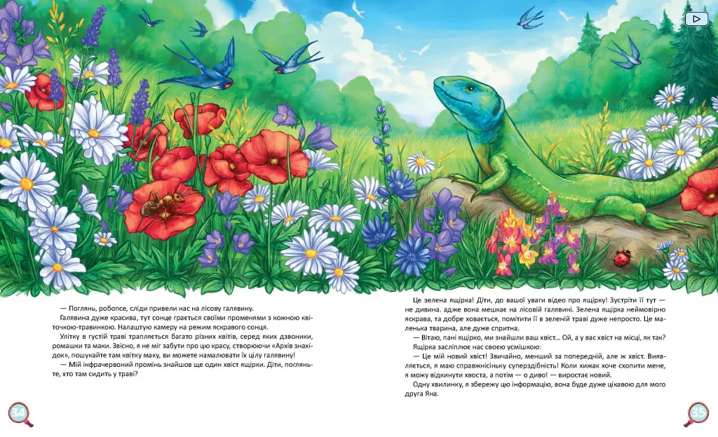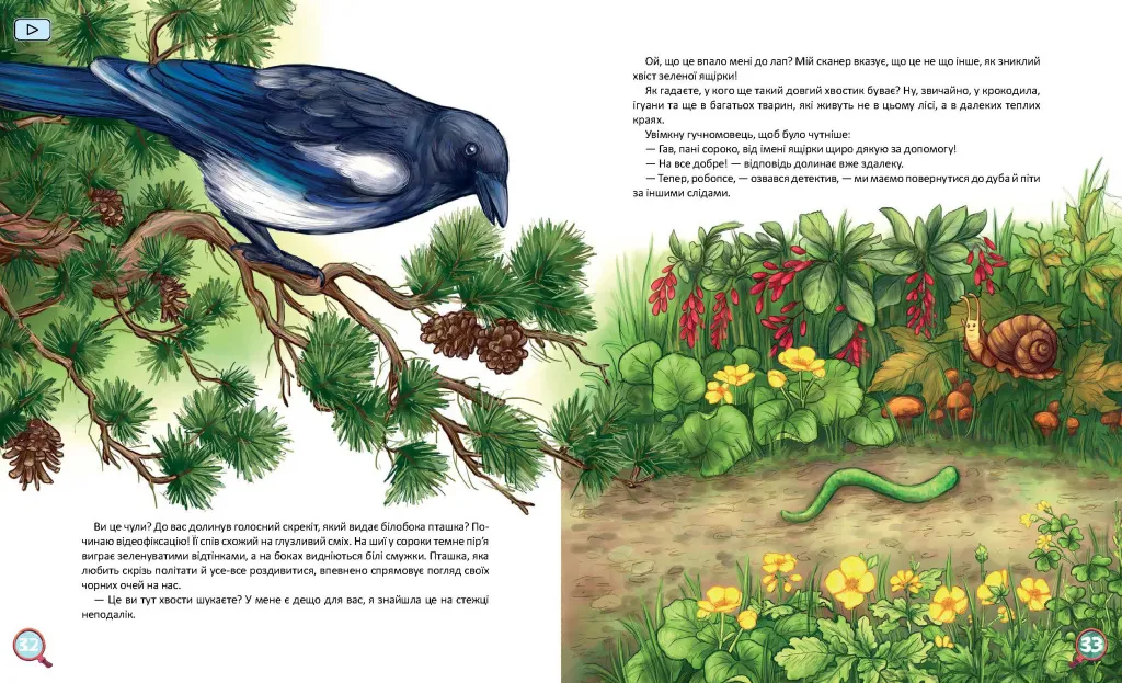 Ян ще в дитсадку, тому не може сам ходити всюди, де йому цікаво. Та він має робопса, здатного вирушити будь-куди замість господаря. Цього разу — у гущавину лісу. А там переполох: у ящірки зник хвіст! Що сталося? За справу береться детектив їжак, і робопес стає його помічником. Нумо розслідувати цю справу разом із героями! За записником детектива визначимо, хто з тварин залишив сліди. Також доведеться скласти фоторобот, перемалювавши деталі за описами свідків. А щоб знайти зниклий хвіст, треба розібратися, кому який належить! Щось забагато таємниць!Розплутуючи «хвостату» історію, що трапилася сонячного літнього дня в лісі десь на Поділлі, діти дізнаються про вигляд та характерні особливості тварин, птахів і рослин.Книжка містить доповнену реальність — відео, які «зафільмував» робопес, тож маленькі читачі можуть наочно побачити мешканців лісу в природному середовищі.