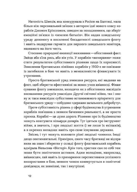 У цій книжці військовий експерт Максим Паламарчук описує еволюцію основних бойових кораблів у стратегічному середовищі, як результат взаємодії численних різноспрямованих впливів: політики, технологій, державних бюджетів, поглядів адміралів на тактику застосування флоту і, не в останню чергу, закономірностей та випадковостей війни.