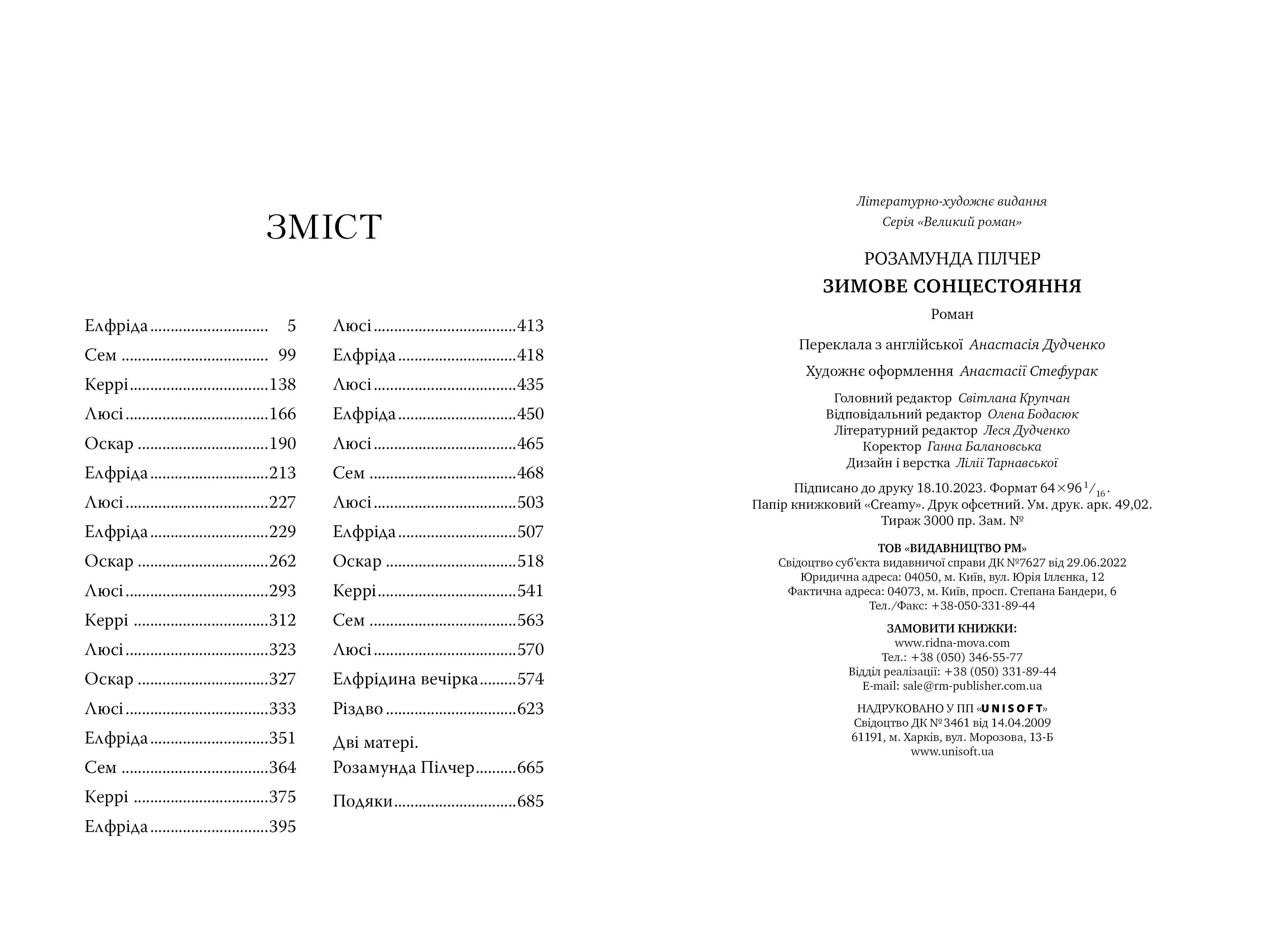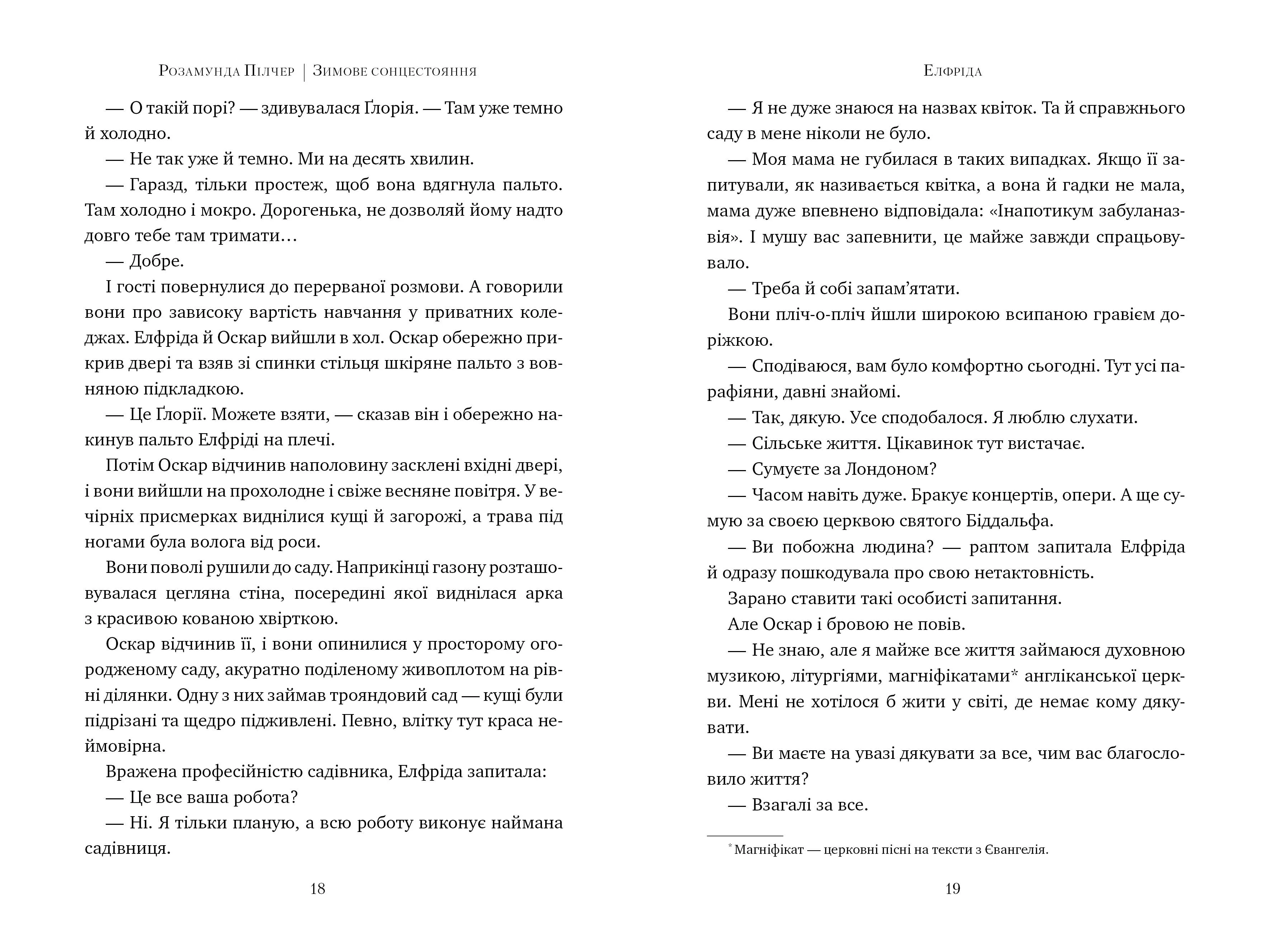 Долі цих людей перетнуться у маєтку в Крейґані — мальовничому шотландському містечку — в найкоротший день року. Перетнуться, щоб змінитися назавжди. «Зимове сонцестояння» Розамунди Пілчер — роман про любов, вірність і зцілення зболених душ.