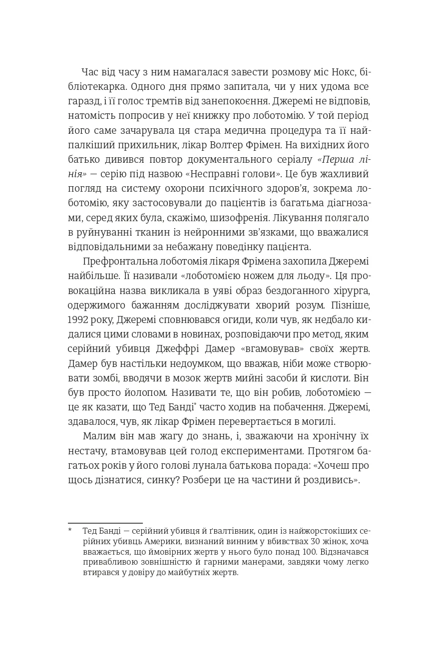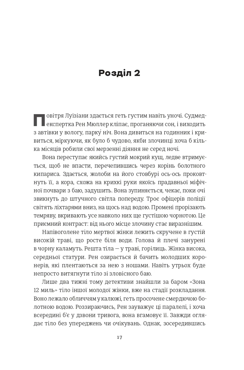 Бестселер The New York Times, що відкриває «Полицю трилер» у #книголав.Спокій тихого містечка порушують жорстокі вбивства. Методичний, розумний і маніпулюючий серійний вбивця зі схильністю до медичних експериментів довгий час уникає поліцію, ховаючись в тіні Луїзіанської затоки. Він наполегливо працює над завершенням свого найжахливішого злочину, знущаючись над владою, яка відчайдушно намагається його наздогнати. Сьогодні він знову виходить на своє полювання. Хто ж буде його жертвою? Паралельно на своє полювання виходить судмедекспертка Рен Мюллер, що має вражаючі знання про історичні злочини та багаторічний досвід роботи в офісі судово-медичної експертизи. Хоч робочий стіл докторки завалений кримінальними справами, вона зацікавлюється вбивцею, що дедалі більше нахабніє. Рен починає складати головоломку між жертвами та вирішує, що вона найкращий кандидат для розшуку вбивці…