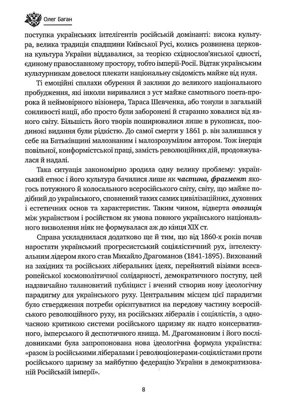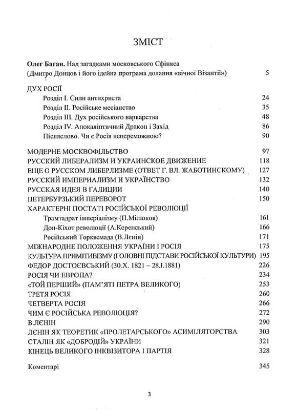 Дмитро Донцов був першим українським політичним мислителем та ідеологом, який розпочав цілісну критику російської цивілізації і ментальності як глобальних загроз для України і Європи. Його публікації перед 1-ю Світовою війною на цю тему підштовхнули українців до переосмислення 200-річного союзу двох православних народів і виявлення правдивих причин глибинного розходження між ними.Збірку склали головні праці автора на російську тематику переважно першого періоду його творчості 1910 – 1930-х рр., коли він зумів пояснити найвиразніші ознаки російського імперіалізму, культури та менталітету. Студія «Дух Росії», хоч і була видана у 1961 р. німецькою мовою, проте цілком передає концептуалістику ранніх виступів Д. Донцова.Видання рекомендується для політологів, філософів, культурологів, літературознавців та всіх, зацікавлених у проблематиці глобальних війн та протистоянь між цивілізаціями.