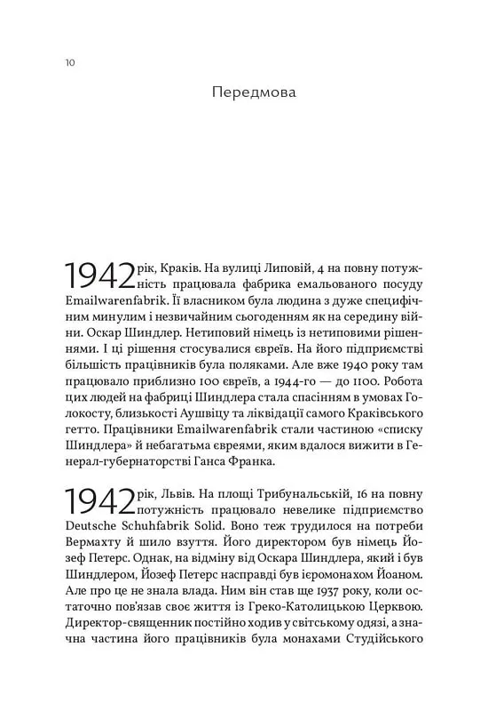 Історія взуттєвої фабрики «Солід» — це захопливе дослідження про львівське підприємство неподалік площі Ринок. На ньому в роки Голокосту монахи Студійського Уставу із благословення митрополита Андрея Шептицького переховували євреїв. Це розповідь про о. Йозефа Петерса, «львівського Шиндлера», який, будучи ченцем та священником, заснував успішне виробництво, яке потрапило в епіцентр подій порятункової акції Глави Греко-Католицької Церкви. У підвалах «Соліду» переховували жінок, дітей, чоловіків, яких нацистський режим прирік на знищення. Упродовж 1942–1944 років їх чимало було сховано та врятовано від страти. Обшуки, доноси, хвороби та голод вони пережили разом із монахами й дочекалися закінчення окупації.