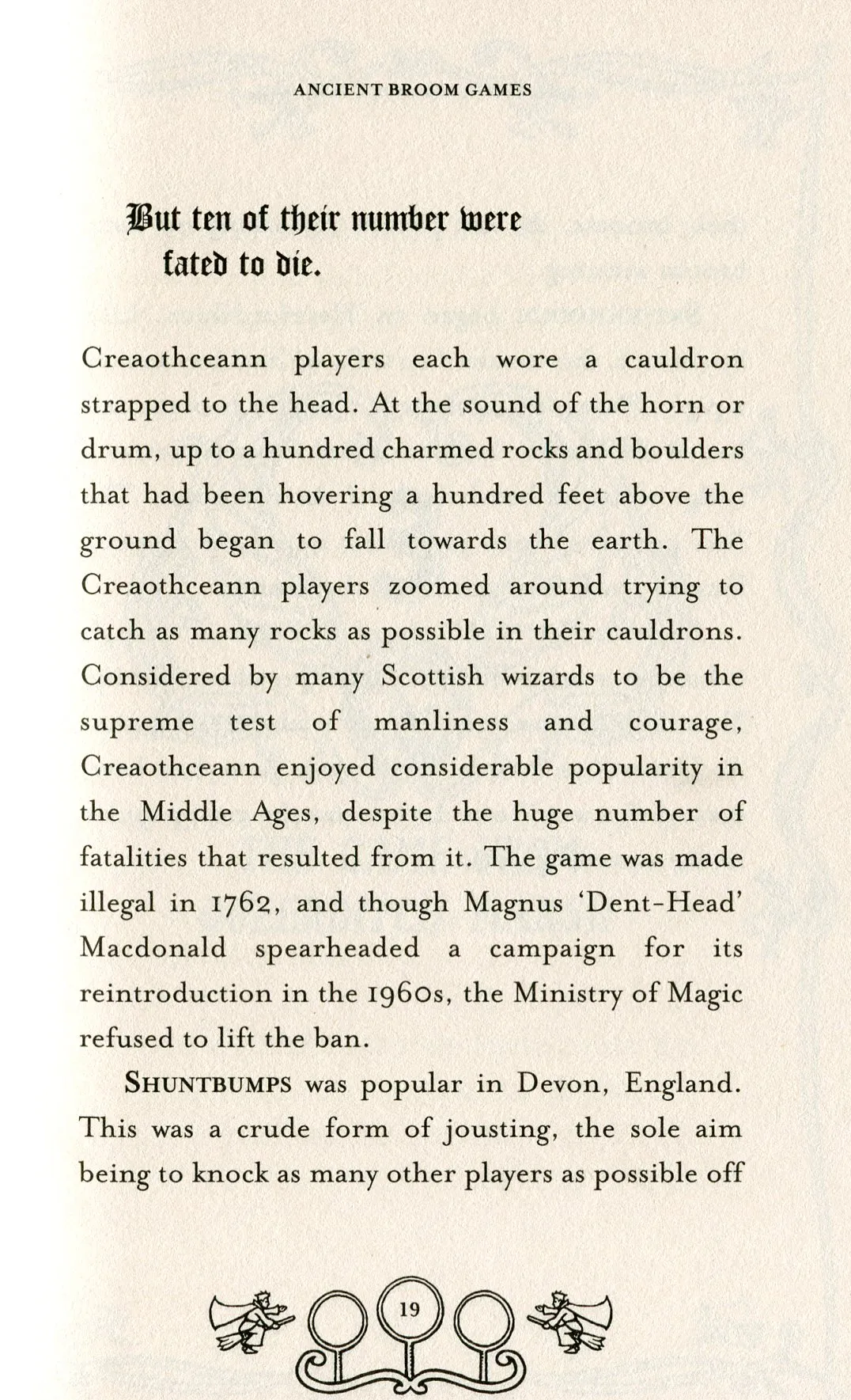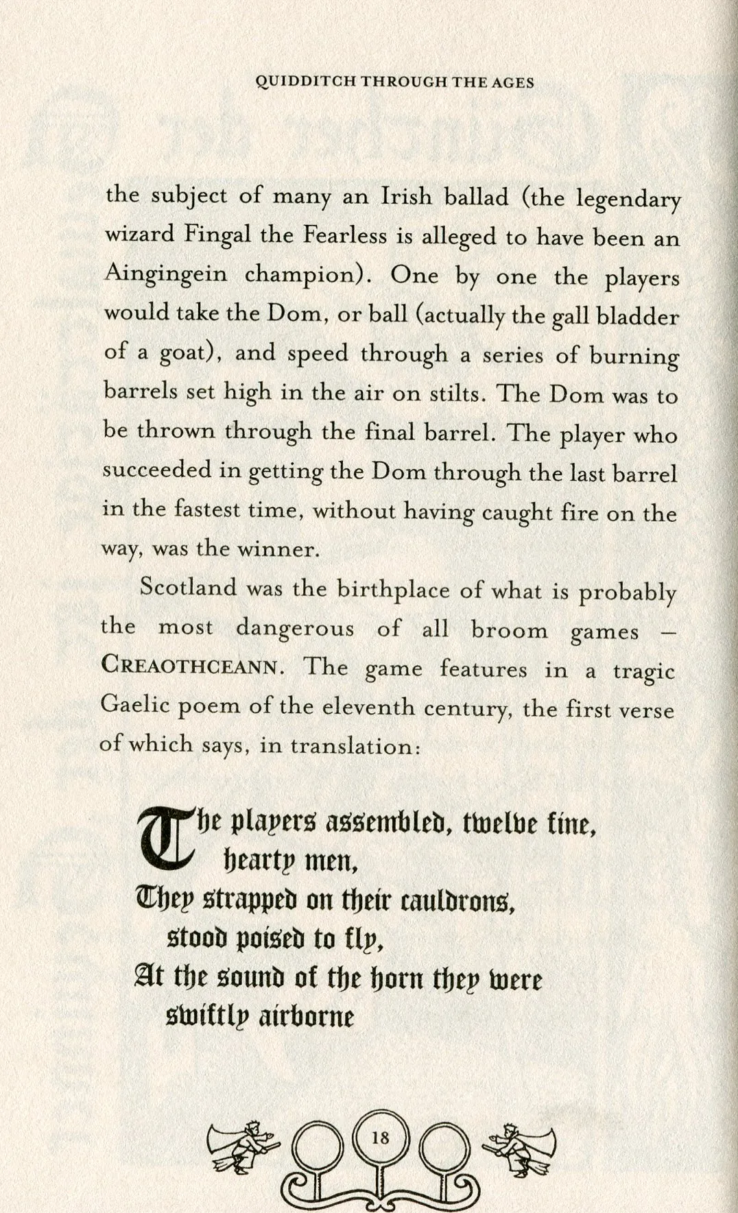 A perennial bestseller in the wizarding world and one of the most popular books in the Hogwarts School library, Quidditch Through the Ages contains all you will ever need to know about the history, the rules – and the breaking of the rules – of the noble sport of Quidditch. Packed with fascinating facts, this definitive guide by the esteemed Quidditch writer Kennilworthy Whisp charts the game's history from its early origins in the medieval mists on Queerditch Marsh, through to the modern-day sport loved by so many wizard and Muggle families around the world. With comprehensive coverage of famous Quidditch teams, the commonest fouls, the development of racing brooms, and much more, this is a must-have sporting bible for all Harry Potter fans, Quidditch lovers and players, whether the weekend amateur or the seasoned Chudley Cannons season-ticket holder. This brand new edition of the most famous sports book in the wizarding world pairs J.K. Rowling's original text, with gorgeous jacket art by Jonny Duddle and line illustrations throughout by Tomislav Tomic. A contribution from the sale of each book will go to Comic Relief.